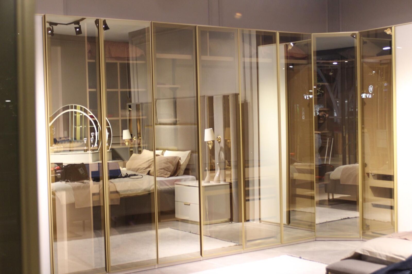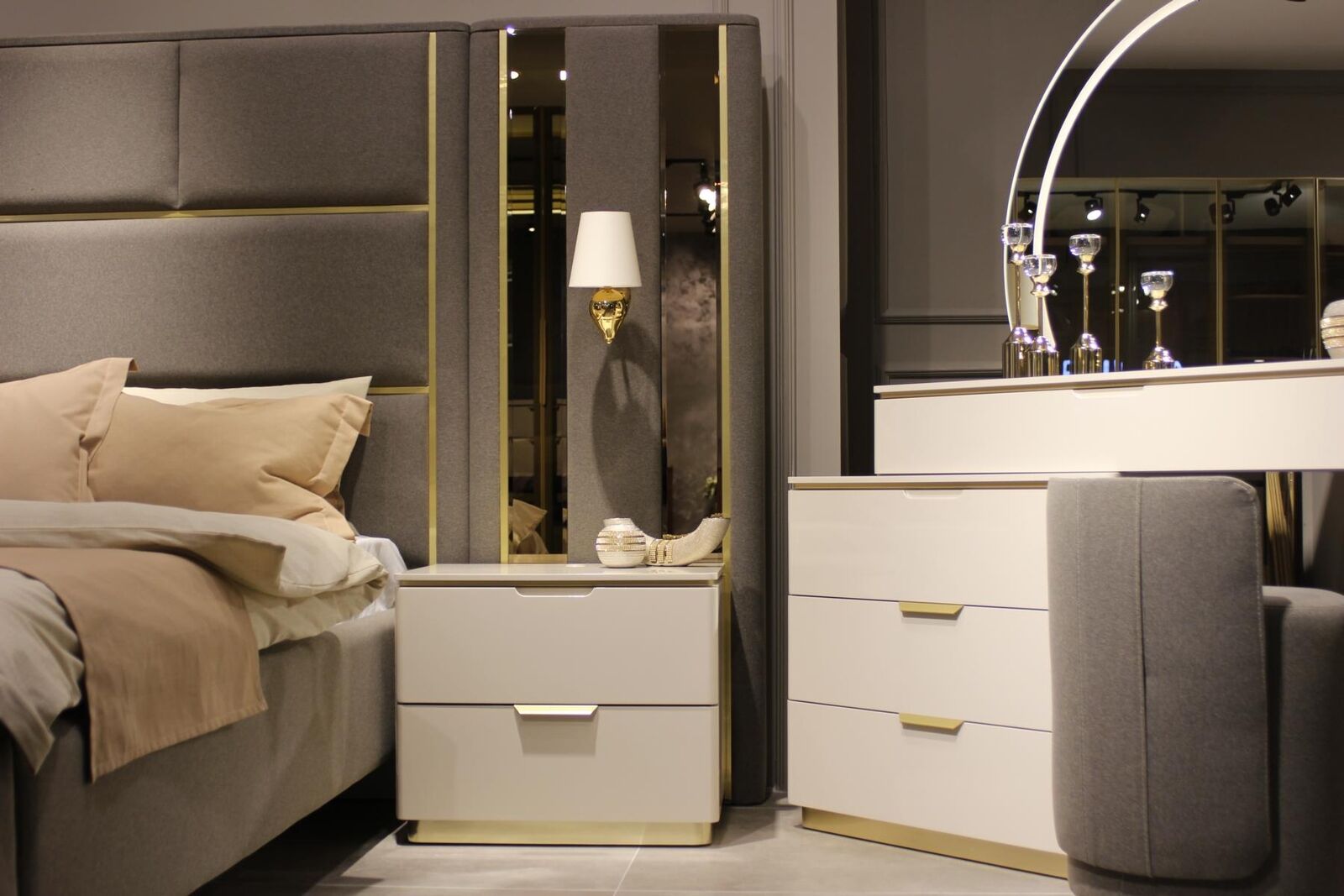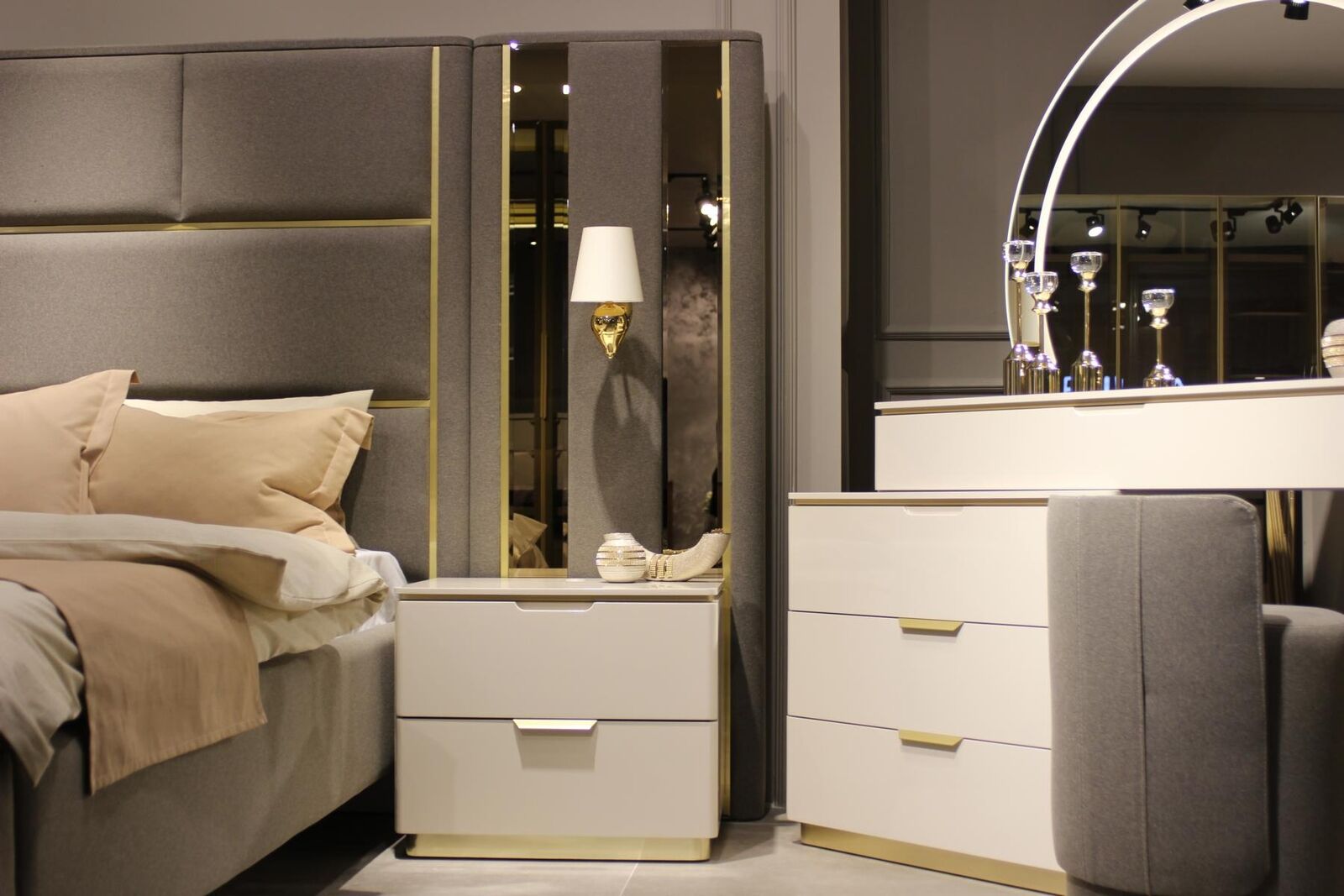Luxus Schlafzimmer Set, Bett, 2x Nachttische, Kommode, Kleiderschrank, Holz, Neu