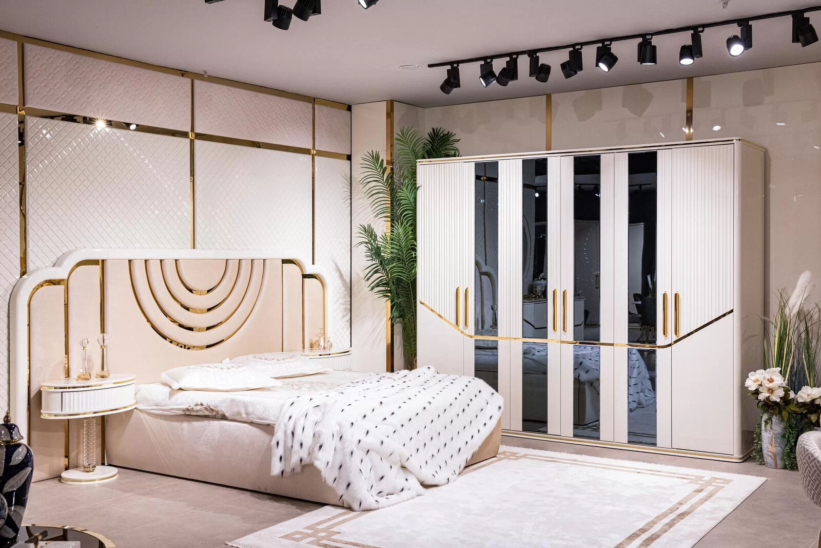 Modern Schlafzimmer Set Bett 2x Nachttische Kleiderschrank Design Möbel 4 tlg