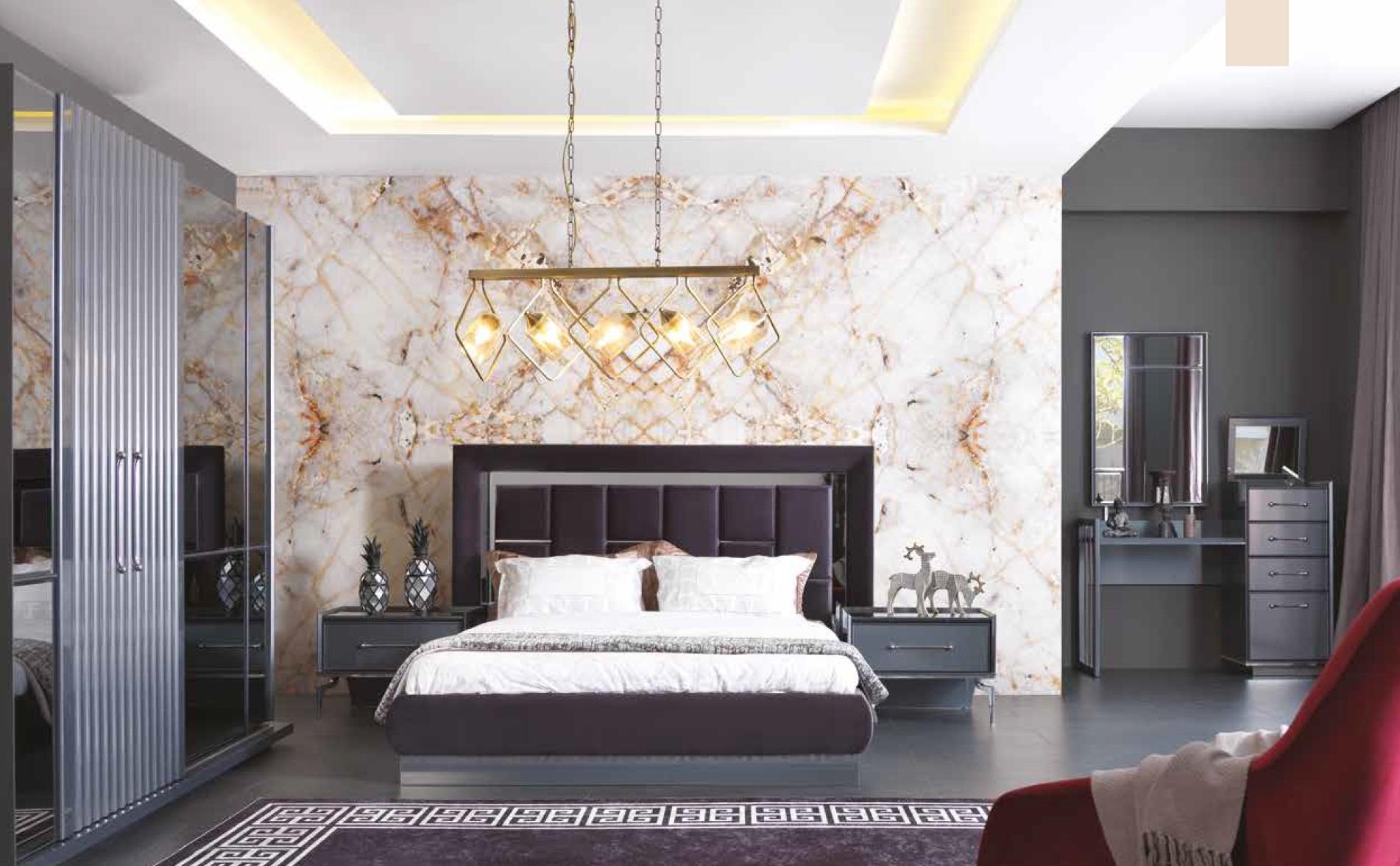 Moderne Schlafzimmer Set Grau Bett 2x Nachttisch Kleiderschrank Kommode 5tlg.