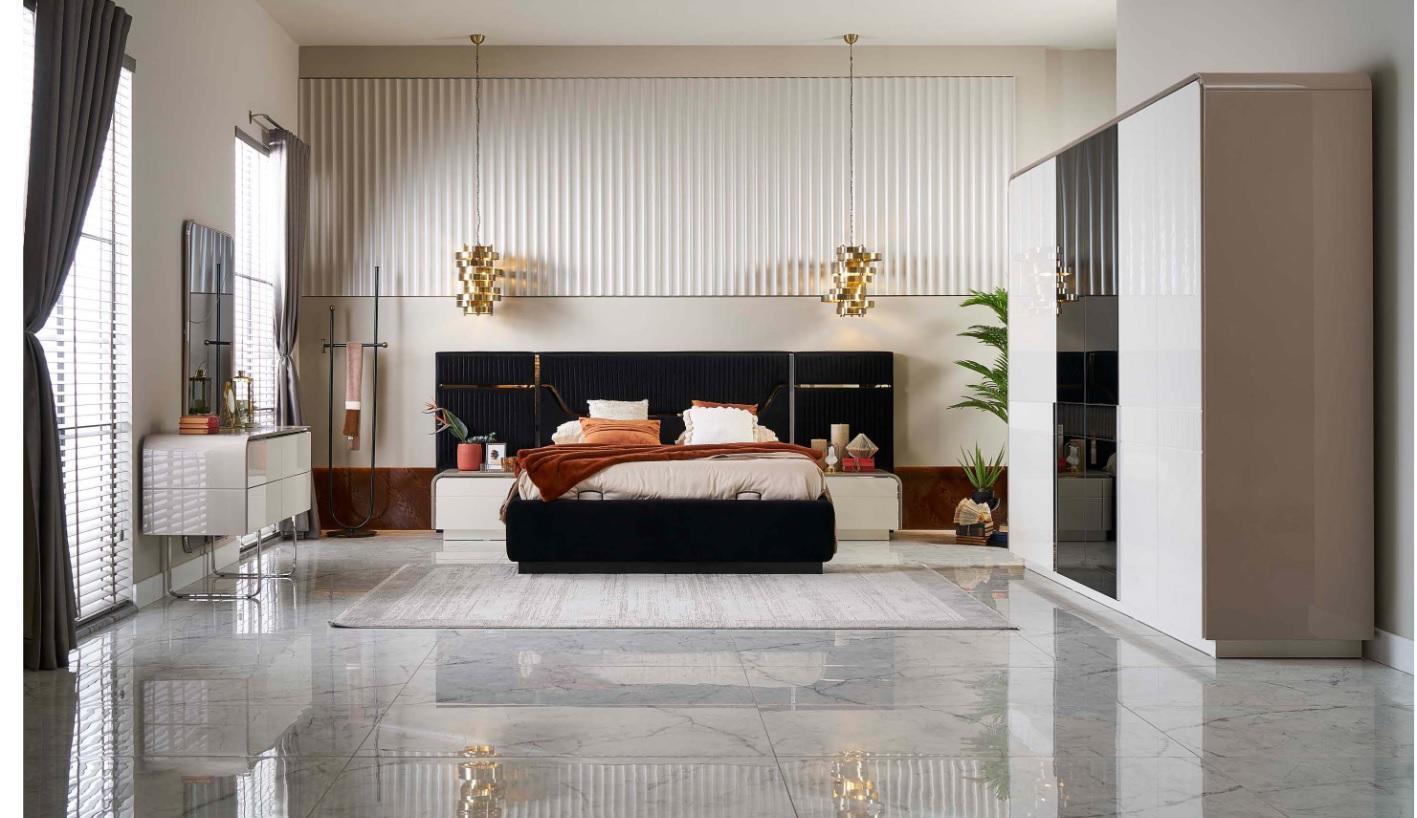 Luxury Bedroom, Double Bed, Bed Frame, Wood, 6-Piece Set, Blue Design Furniture