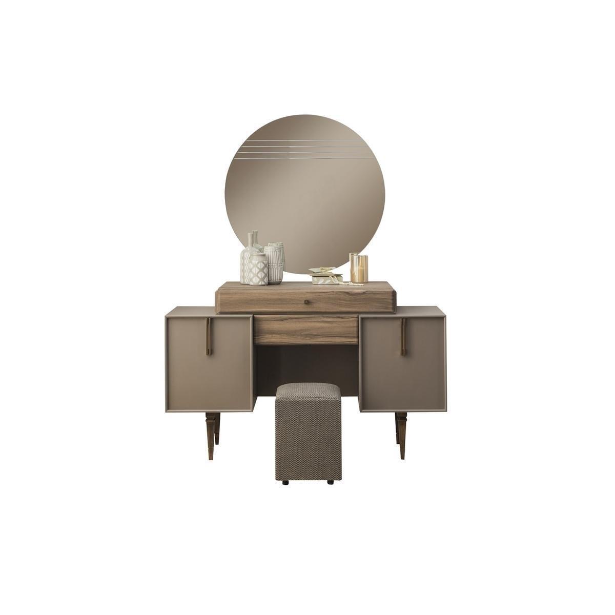 Schminktisch mit Spiegel, Tisch mit Pouffe, Schlafzimmermöbel
