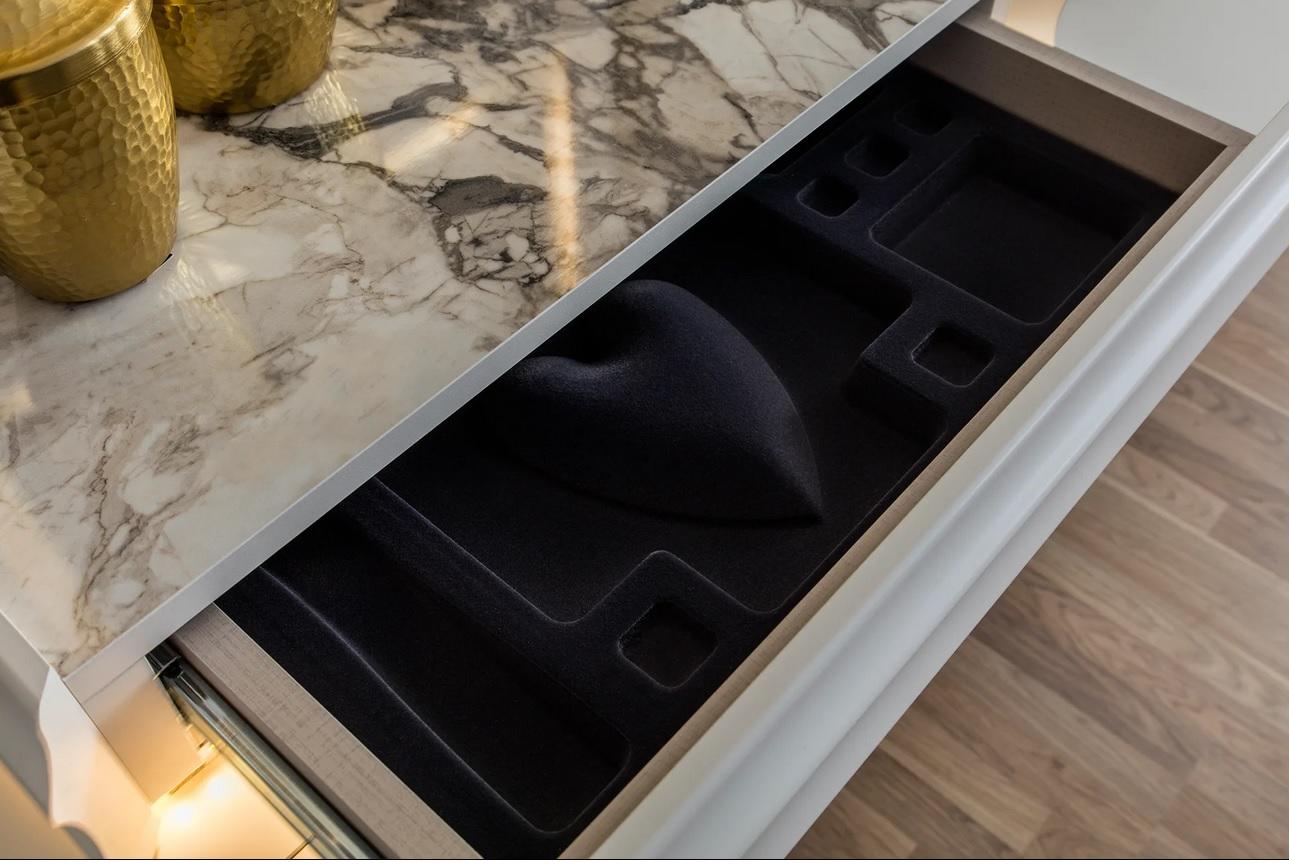 Entdecken Sie den Luxus und die Eleganz dieses exklusiven 2-teiligen Schlafzimmer Sets: Schminktisch mit Spiegel und Konsole. Der Schminktisch bietet Ihnen mit Maßen von ca. 145 x 48,5 x 110,5 cm viel Platz für Ihre Schönheitsroutine. Hergestellt aus hochwertigem Holz, Glas und Edelstahl in der Farbe wie abgebildet, ist dieses Set nicht nur funktional, sondern auch ein wahrer Blickfang in Ihrem Zuhause. Gönnen Sie sich etwas Besonderes und holen Sie sich dieses Luxus Schlafzimmer Set noch heute!