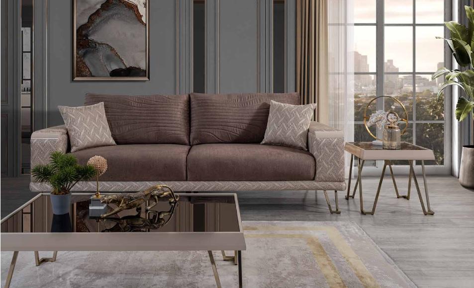 Braun-Beige Sofagarnitur 3+3+1 Sitzer Designer Couchtisch Beistelltisch