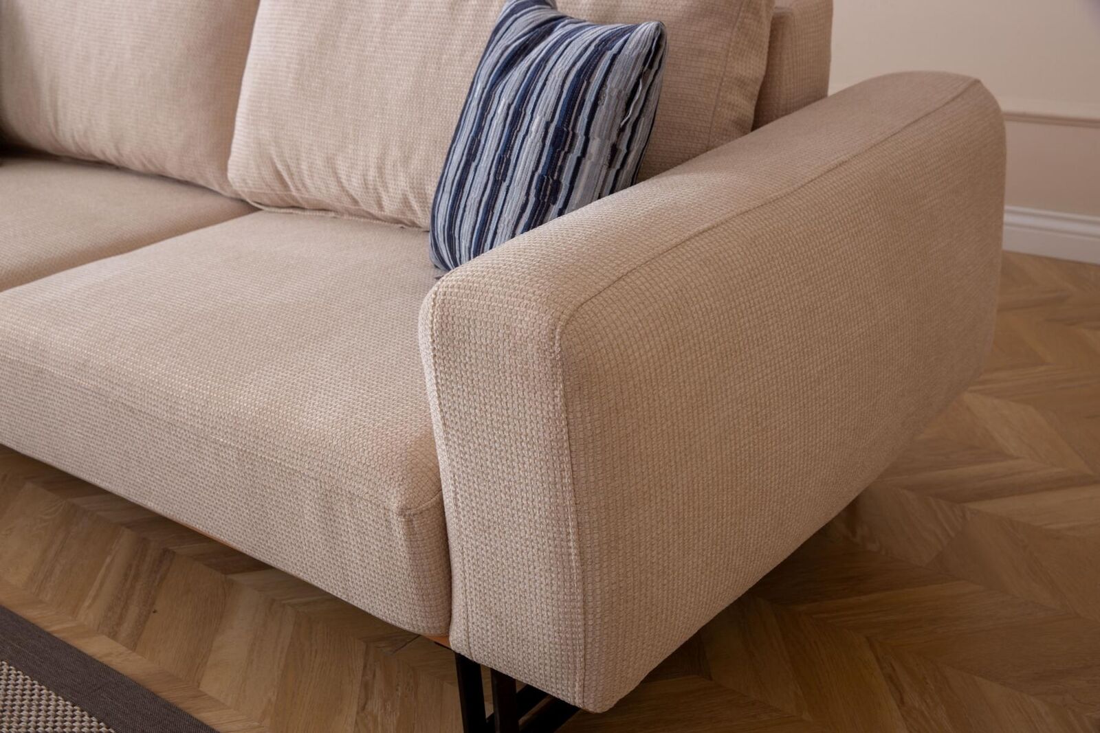 Verschönern Sie Ihr Wohnzimmer mit unserem Designer Wohnzimmer Set von XL Mobel! Dieses 3-teilige Set besteht aus einer eleganten Ecksofa-Landschaft in L-Form, einem geräumigen 3-Sitzer-Sofa und einem gemütlichen Sessel. Gefertigt aus hochwertigem Holz und Textil in der Farbe wie abgebildet, verleihen diese Möbelstücke Ihrem Zuhause einen Hauch von Luxus. Das Ecksofa hat beeindruckende Maße von ca. 325 x 230 cm und bietet sowohl Komfort als auch Stil. Mit einer Sitzhöhe von ca. 42 cm und einer Sitztiefe von ca. 64 cm können Sie sich bequem entspannen. Der 3-Sitzer-Sofa ist ca. 230 x 97 x 75 cm groß und der Sessel misst ca. 88 x 80 x 80 cm. Profitieren Sie von unserer großen Auswahl an Möbeln und gönnen Sie sich dieses exklusive Wohnzimmer Set. Erhältlich in anderen Farben auf Anfrage. Holen Sie sich jetzt dieses Set und verwandeln Sie Ihr Wohnzimmer in eine stilvolle Oase der Entspannung!