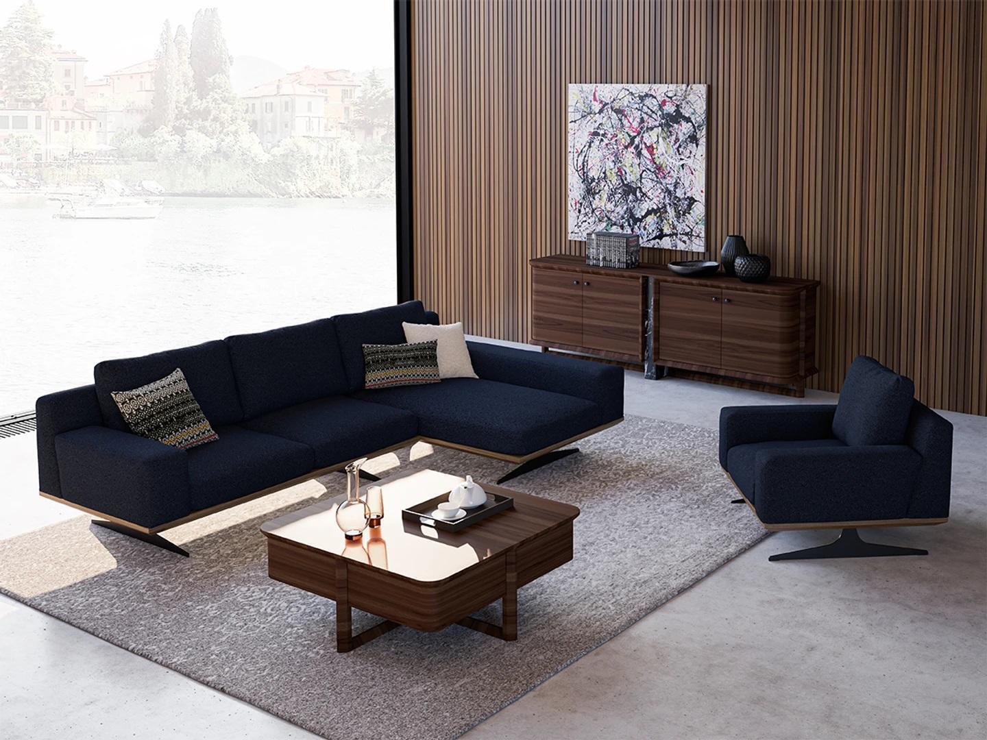Modern Blau Designer Wohnzimmer Einrichtung Polstersofa Luxus Polster Textil