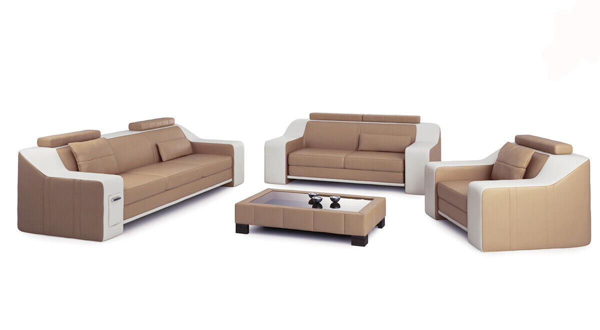 Ledersofa Couch Wohnlandschaft 3+2+1 Sitzer Garnitur Modern Sofa Garnituren neu