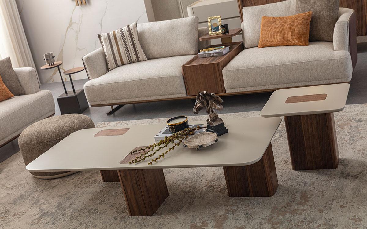 Entdecken Sie unsere luxuriöse Sofagarnitur für Ihr Wohnzimmer! Das 3+1 Set beinhaltet ein geräumiges 3-Sitzer-Sofa, einen gemütlichen Sessel, einen stilvollen Couchtisch und einen praktischen Beistelltisch. Hergestellt aus hochwertigem Holz und Textil in einem ansprechenden Design. Die Maße sind perfekt aufeinander abgestimmt: Das Sofa ist ca. 243 x 103 x 60 cm groß, der Sessel ca. 88 x 72 x 84 cm, der Couchtisch ca. 165 x 47 x 45 cm und der Beistelltisch ca. 50 x 45 x 50 cm. Gönnen Sie sich ein elegantes Möbelstück in der Farbe wie abgebildet und verschönern Sie Ihr Zuhause! Maße, Farben und weitere Optionen auf Anfrage.