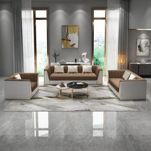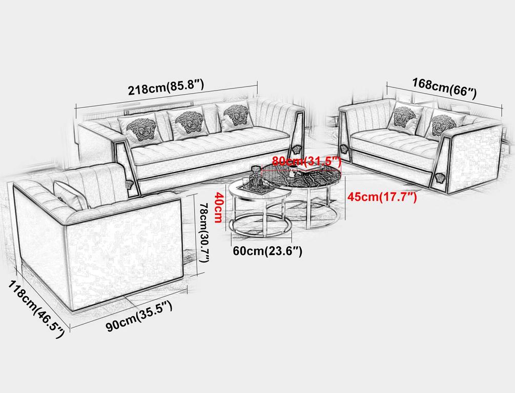 Entspannen Sie in Luxus mit unserer Medusa Sitzmöbel Couch Garnitur! Diese stilvolle 3-teilige Sofa-Couchen Möbel Einrichtung wird Ihr Wohnzimmer in einen eleganten Raum verwandeln. Hergestellt aus hochwertigem Premium Lederfaserstoff (70% Leder / 30% Polyester) bietet diese Sitzgarnitur sowohl Komfort als auch Langlebigkeit. Mit Maßen von ca. 218 x 90 x 85 cm für den 3-Sitzer, 168 x 90 x 80 cm für den 2-Sitzer und 118 x 90 x 80 cm für den 1-Sitzer sowie einer angenehmen Sitzhöhe von ca. 46 cm und einer Sitztiefe von ca. 58 cm, bietet dieses Set genügend Platz für Sie und Ihre Gäste. Sie haben die Freiheit, Ihre Lieblingsfarbe aus einer Vielzahl von Optionen auszuwählen. Darüber hinaus können Sie zwischen verschiedenen Materialoptionen wie Premium Echtleder, Premium Textilstoff oder Premium Vollleder gegen Aufpreis wählen. Erleben Sie den Komfort und die Eleganz unserer Medusa Sitzmöbel Couch Garnitur und verleihen Sie Ihrem Zuhause einen Hauch von Luxus und Stil. Bestellen Sie jetzt und genießen Sie exklusive Qualität in Ihrem Wohnzimmer!