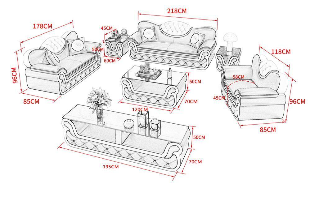 Entdecken Sie unsere moderne Stoffsofagarnitur mit 3+2+1 Sitzen, eine exklusive Polstergarnitur, die jedem Raum Eleganz verleiht. Mit individuellen Anpassungsmöglichkeiten können Sie die Sitztiefe, Länge und Breite nach Ihren Wünschen gestalten. Wählen Sie aus einer Vielzahl von Farben wie Braun, Grün, Schwarz, Blau, Rot und Grau. Zudem stehen verschiedene Materialoptionen zur Auswahl, darunter Samt, Velours, Polyester, Kunstleder oder Premium-Leder. Hergestellt aus hochwertigem Premium Lederfaserstoff (70% Leder / 30% Polyester), bietet dieses Sofa höchsten Komfort und Langlebigkeit. Optional können Sie zwischen verschiedenen Materialgruppen wählen, darunter Premium Echtleder, Premium Textilstoff und Premium Vollleder. Jede Variante wird mit Liebe zum Detail gefertigt und bietet ein luxuriöses Sitzerlebnis. Die Maße der einzelnen Elemente (3-Sitzer, 2-Sitzer, Sessel) sorgen für ausreichend Platz zum Entspannen und Wohlfühlen. Mit einer Sitzhöhe von ca. 45 cm und einer Sitztiefe von ca. 57 cm ist dieses Sofa perfekt zum Zurücklehnen geeignet. Wählen Sie Ihre Lieblingsfarbe und Materialoption aus und lassen Sie sich von der Qualität und dem Design unserer Sofagarnitur überzeugen. Nutzen Sie die Möglichkeit, Ihre eigenen Designideen umzusetzen und machen Sie Ihr Zuhause mit unserer modernen Couch zu einem stilvollen Wohntraum.