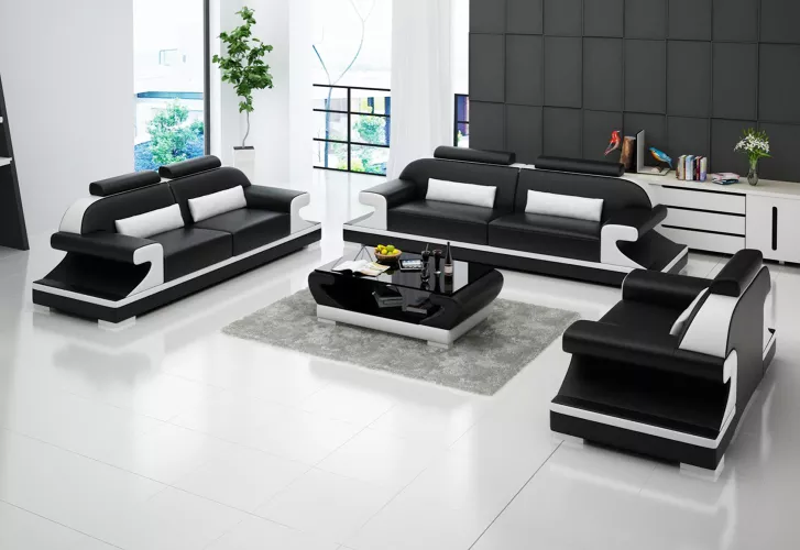 Entdecken Sie die Moderne Sofagarnitur 221, eine stilvolle Sitzgruppe, die Ihrem Wohnzimmer Eleganz und Komfort verleiht. Diese hochwertige Garnitur besteht aus einem geräumigen Sessel, einem gemütlichen 2-Sitzer und einem praktischen Couchtisch. Mit Maßen von ca. 145 x 92 x 95 cm für den Sessel, ca. 206 x 92 x 95 cm für den ersten 2-Sitzer und ca. 226 x 92 x 95 cm für den zweiten 2-Sitzer bietet dieses Set ausreichend Platz zum Entspannen. Hergestellt aus Premium Lederfaserstoff (70% Leder / 30% Polyester)** sorgt die Sofagarnitur nicht nur für ein luxuriöses Gefühl, sondern ist auch besonders strapazierfähig. Sie haben die freie Farbwahl und können zwischen verschiedenen Farben wie Ocker, Safrangelb, Kobaltblau und mehr wählen. Darüber hinaus stehen Ihnen verschiedene Materialoptionen zur Verfügung, darunter Premium Echtleder, Premium Textilstoff und Premium Vollleder. Verwandeln Sie Ihr Wohnzimmer in eine stilvolle Wohlfühloase mit der Modernen Sofagarnitur 221! Bei Fragen zu Farben oder Größenänderungen stehen wir Ihnen gerne zur Verfügung. Machen Sie Ihr Wohnzimmer zu einem Ort, an dem Sie sich gerne aufhalten.