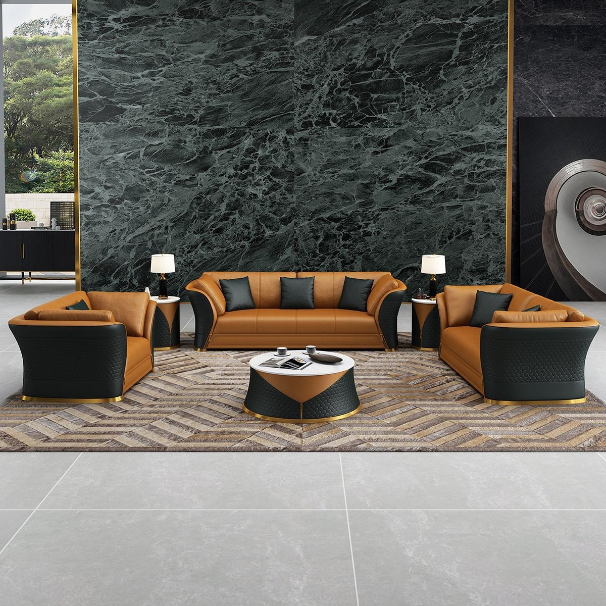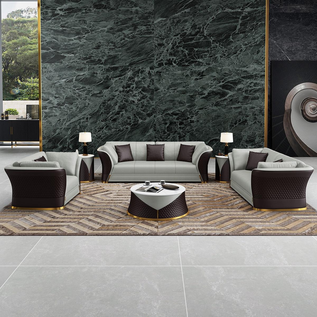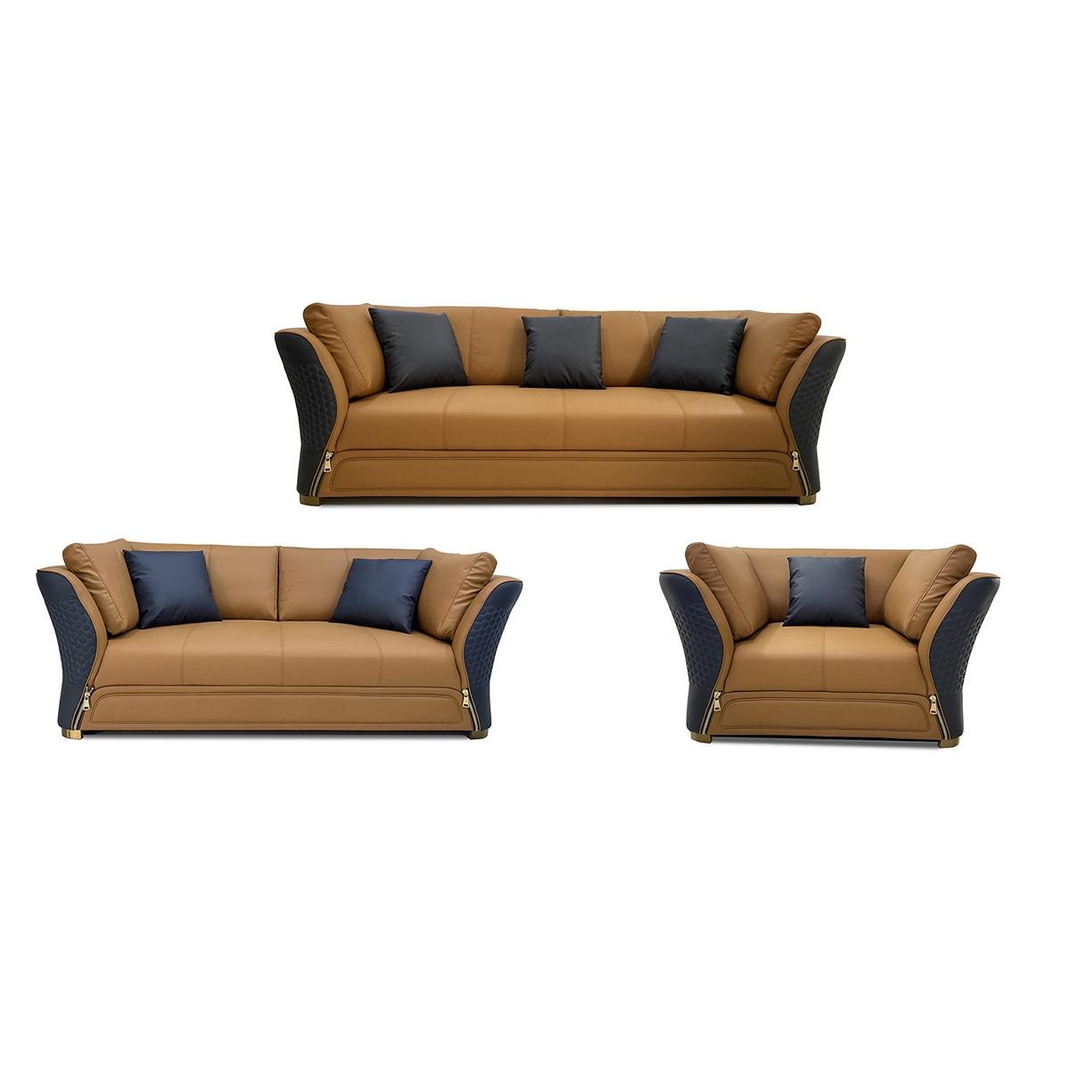 Entspannen Sie in Stil und Komfort mit unserer modernen Sitzgarnitur 3+2+1 Sitzer Design Polster Sofas aus hochwertigem Leder in Braun. Die Sofagarnitur besteht aus einem großzügigen 3-Sitzer, einem gemütlichen 2-Sitzer und einem bequemen Sessel, alle mit angenehmen Maßen für puren Genuss. Das Premium Lederfaserstoff-Material bietet Luxus und Langlebigkeit, während Sie optional zwischen verschiedenen Bezugsgruppen wählen können, um Ihren persönlichen Stil zu treffen. Ob klassisches Schwarz, elegantes Silber oder lebendiges Grün - finden Sie die perfekte Farbe für Ihre Einrichtung. Mit einem Innengestell aus echtem Holz und hochwertigen Materialien aus Italien gefertigt, ist diese Sofagarnitur nicht nur ein Blickfang, sondern auch praktisch und robust. Gönnen Sie sich und Ihren Gästen das beste Sitzerlebnis mit diesem modernen und entspannten Sofa-Set! Holen Sie sich jetzt Ihre neue Lieblings-Sitzgarnitur und lassen Sie sich von Qualität und Design überzeugen.