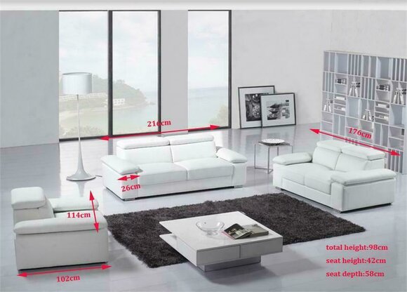 Entdecken Sie puren Luxus mit unserer modernen Sofagarnitur aus der Design-Serie! In verschiedenen Farben erhältlich, von Ocker bis Kobaltblau, bietet dieses exklusive Sofa-Set Stil und Komfort für Ihr Zuhause. Hergestellt aus Premium Lederfaserstoff (70% Leder / 30% Polyester) garantiert es Langlebigkeit und Eleganz. Die Maße sprechen für sich: - 3-Sitzer: ca. 216 x 98 x 102 cm - 2-Sitzer: ca. 176 x 98 x 102 cm - 1-Sitzer: ca. 114 x 98 x 102 cm Erleben Sie pure Entspannung mit einer Sitztiefe von ca. 58 cm und einer Sitzhöhe von ca. 42 cm. Optional können Sie zwischen verschiedenen Stoffen wählen, darunter Premium Echtleder oder Vollleder. Die hochwertige Verarbeitung mit einem Holzgestell und Federkern sorgt für höchsten Sitzkomfort. Bringen Sie mit unserer exklusiven Sofagarnitur Eleganz in Ihr Wohnzimmer. Bestellen Sie jetzt und lassen Sie sich von Qualität und Design überzeugen!