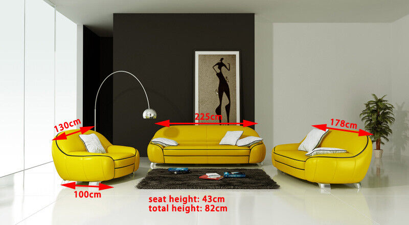 Entspannen Sie in Stil und Komfort mit unserer hochwertigen Sofagarnitur 3+2+1! Diese Designer-Sofas Garnitur wird in verschiedenen Farben angeboten, darunter Ocker, Safrangelb, Marineblau, und viele mehr. Die Maße reichen von ca. 130 bis 225 cm in der Länge und bieten somit genügend Platz für die ganze Familie. Hergestellt aus Premium Lederfaserstoff und optional auch in Echtleder erhältlich, überzeugt dieses Sofa nicht nur durch sein modernes Design, sondern auch durch seine Qualität. Gönnen Sie sich ein Stück Luxus für Ihr Zuhause und bestellen Sie noch heute Ihre neue Sofagarnitur!