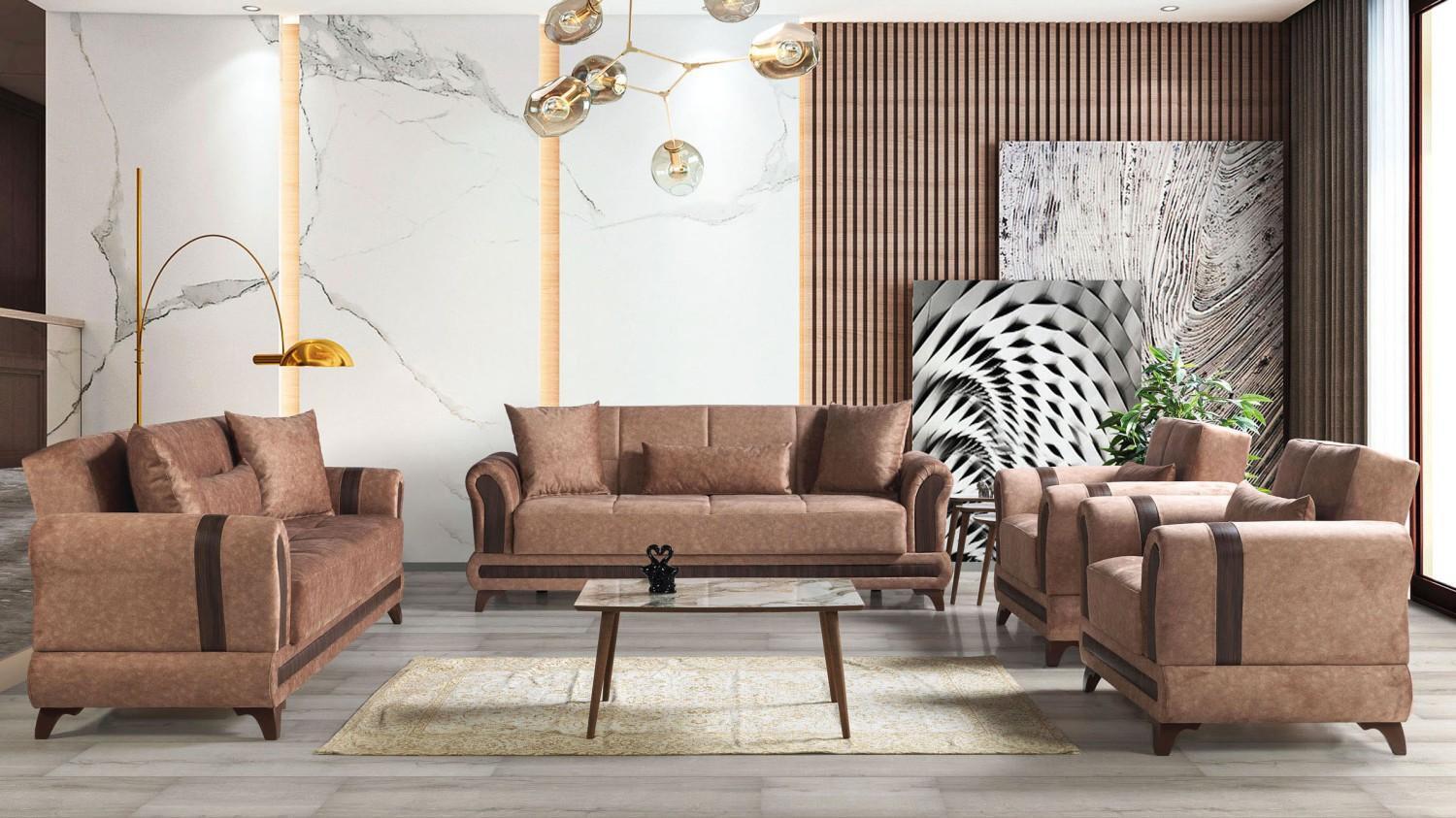Sofagarnitur 3+2+1+1 Sitzer Wohnzimmer Set Textil Sofa Sessel Schlafsofa