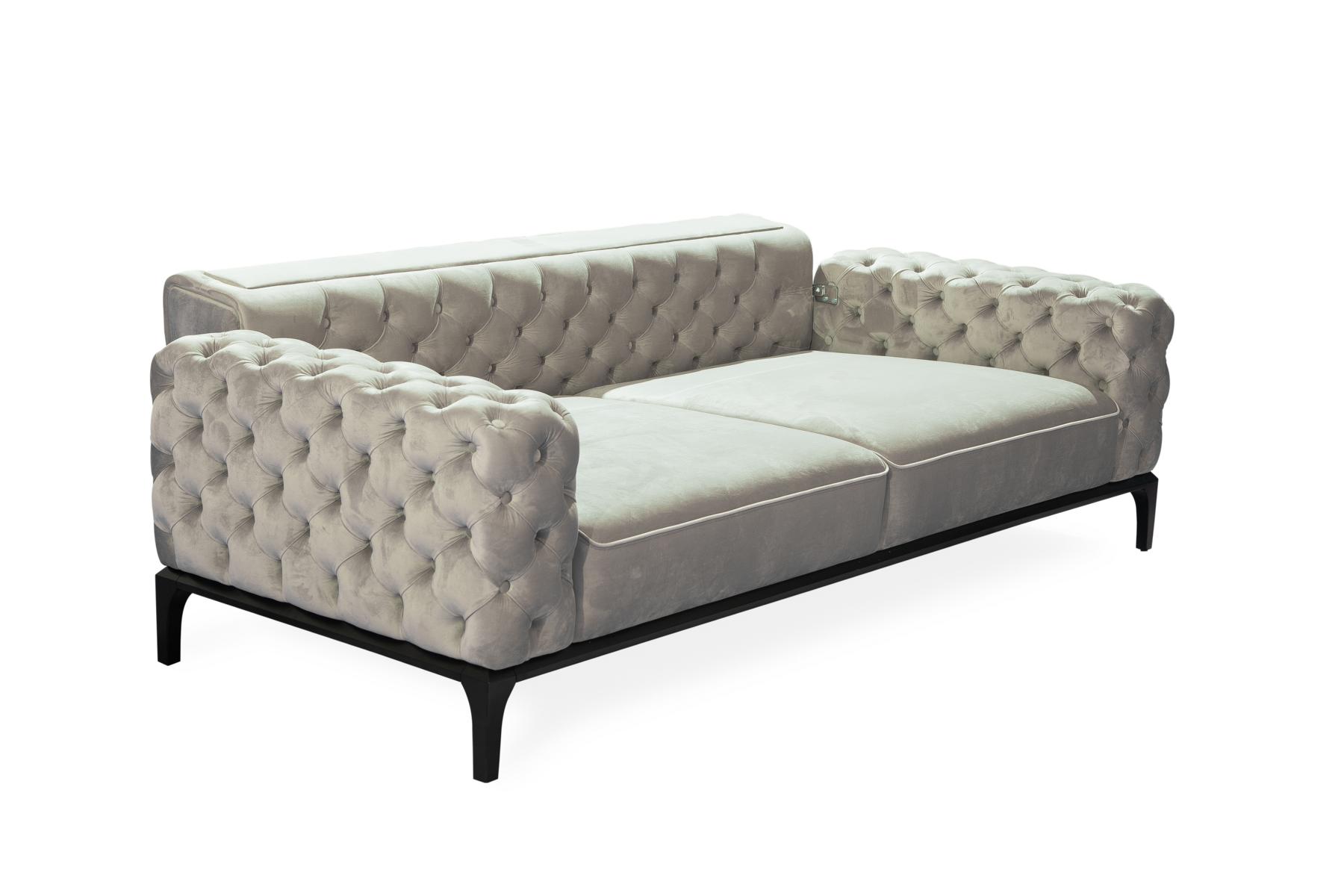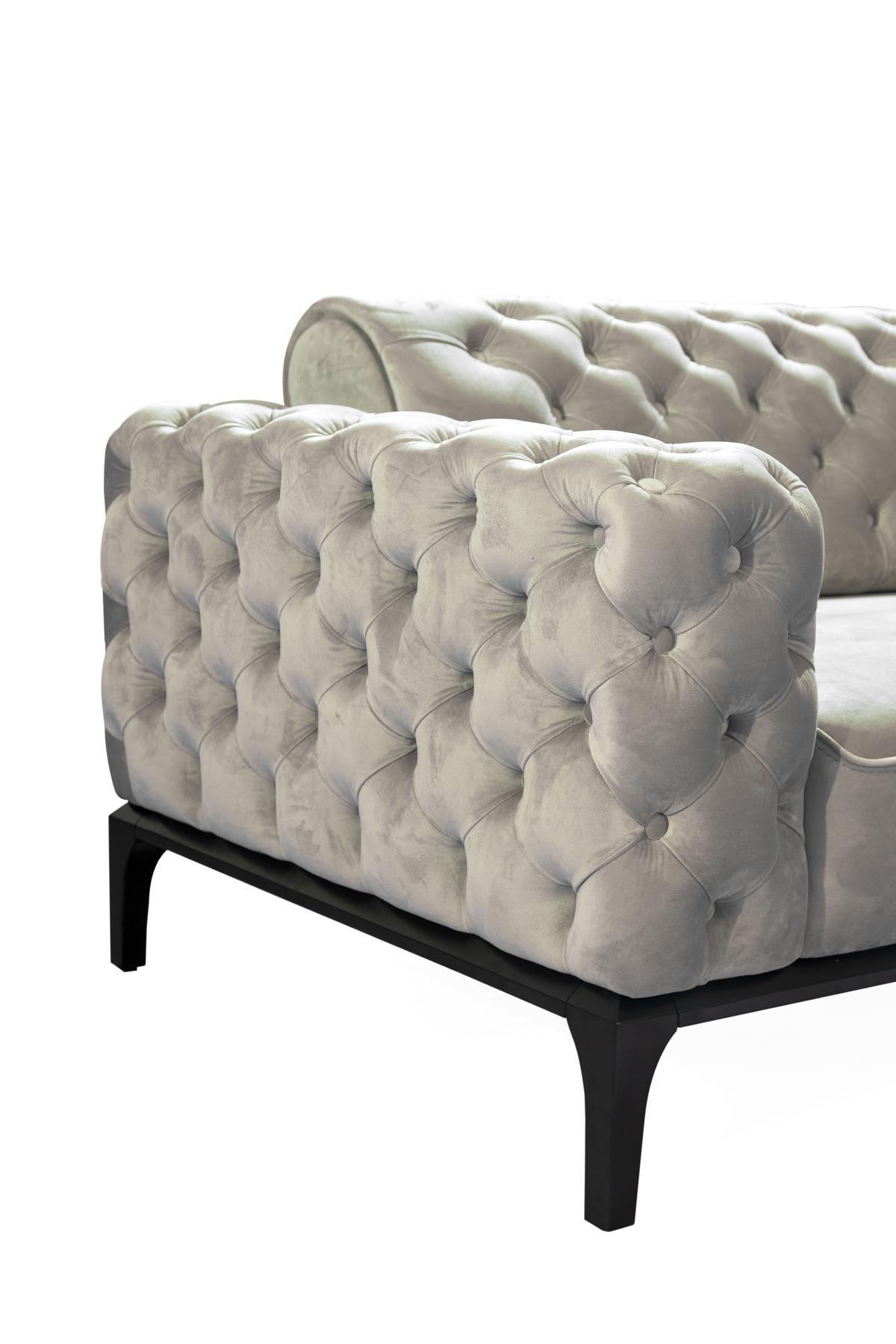 Chesterfield Sofagarnitur Sofa 3+1 Sitzer Stoff Grau Luxus Sofas Weiß
