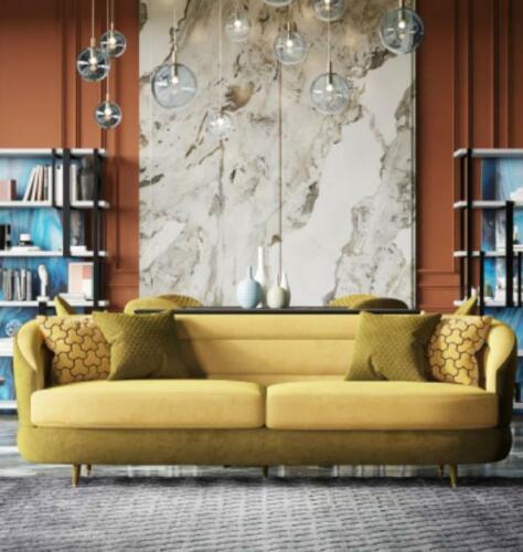 Bringen Sie mit unserer Design Couch Lounge Sofagarnitur in leuchtendem Gelb einen Hauch von Luxus in Ihr Zuhause! Hergestellt aus hochwertigem Samt und ausgestattet mit einem Innenrahmen aus Massivholz, bietet dieses 3+1 Sitzer Sofa optimalen Komfort und Stil. Der 3-Sitzer misst ca. 236 x 94 x 84 cm, während der Sessel ca. 100 x 94 x 84 cm misst. Die Sitzhöhe beträgt ca. 40 cm und die Sitztiefe ca. 60 cm. Es stehen auch andere Größen zur Verfügung, die Farbe ist wie abgebildet, jedoch sind andere Farben auf Anfrage möglich. Bringen Sie mit unserer glamourösen Sofagarnitur Eleganz in Ihr Wohnzimmer!