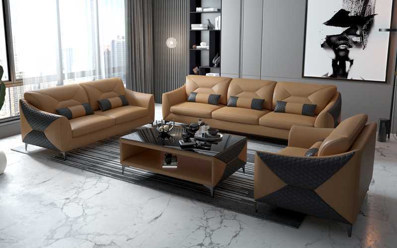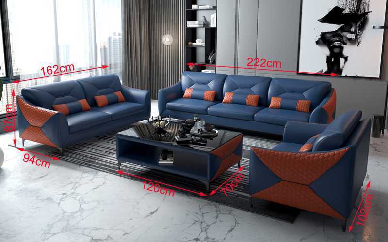 Entdecken Sie unseren stilvollen 3+2+1 Ledersofa Couchgarnitur in Grau! Diese hochwertige Sofagarnitur bietet Ihnen nicht nur maximalen Komfort, sondern auch zeitloses Design für Ihr Zuhause. Hergestellt in verschiedenen Farben wie Ocker, Safrangelb, Azurblau und vielen mehr, können Sie Ihr Sofa ganz nach Ihren Wünschen gestalten. Das 3-Sitzer-Sofa misst ca. 222 cm in der Länge, der 2-Sitzer ca. 162 cm und der Sessel ca. 102 cm. Wählen Sie zwischen Premium Kunstleder, Lederfaserstoff, Echtleder oder Textilstoff für das Material Ihrer Garnitur. Mit unserer Couchgarnitur holen Sie sich nicht nur ein Möbelstück, sondern ein echtes Highlight in Ihr Wohnzimmer. Stilvoll, bequem und in höchster Qualität - überzeugen Sie sich selbst von unserer Garnitur Sofagarnitur Couchgarnitur 321 Sitzer Ledersofa Couch Grau!