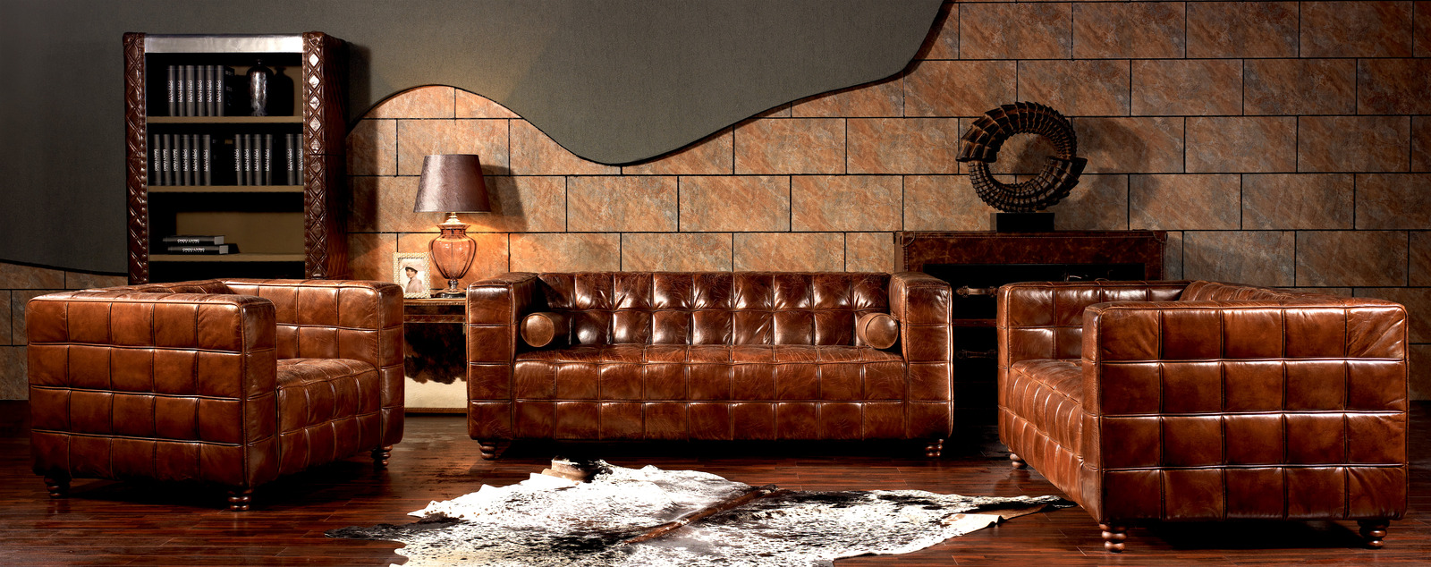 Klassische Echtleder Couch Polster Sofagarnitur Sitz Garnituren Couchen 3tlg neu