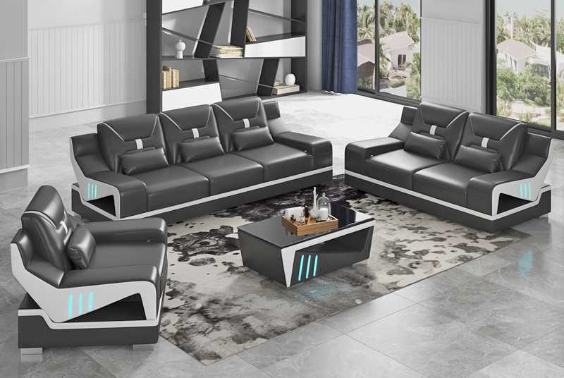 Luxus Sofagarnitur Komplette Couchgarnitur Schwarz Kunstleder Sofa 321