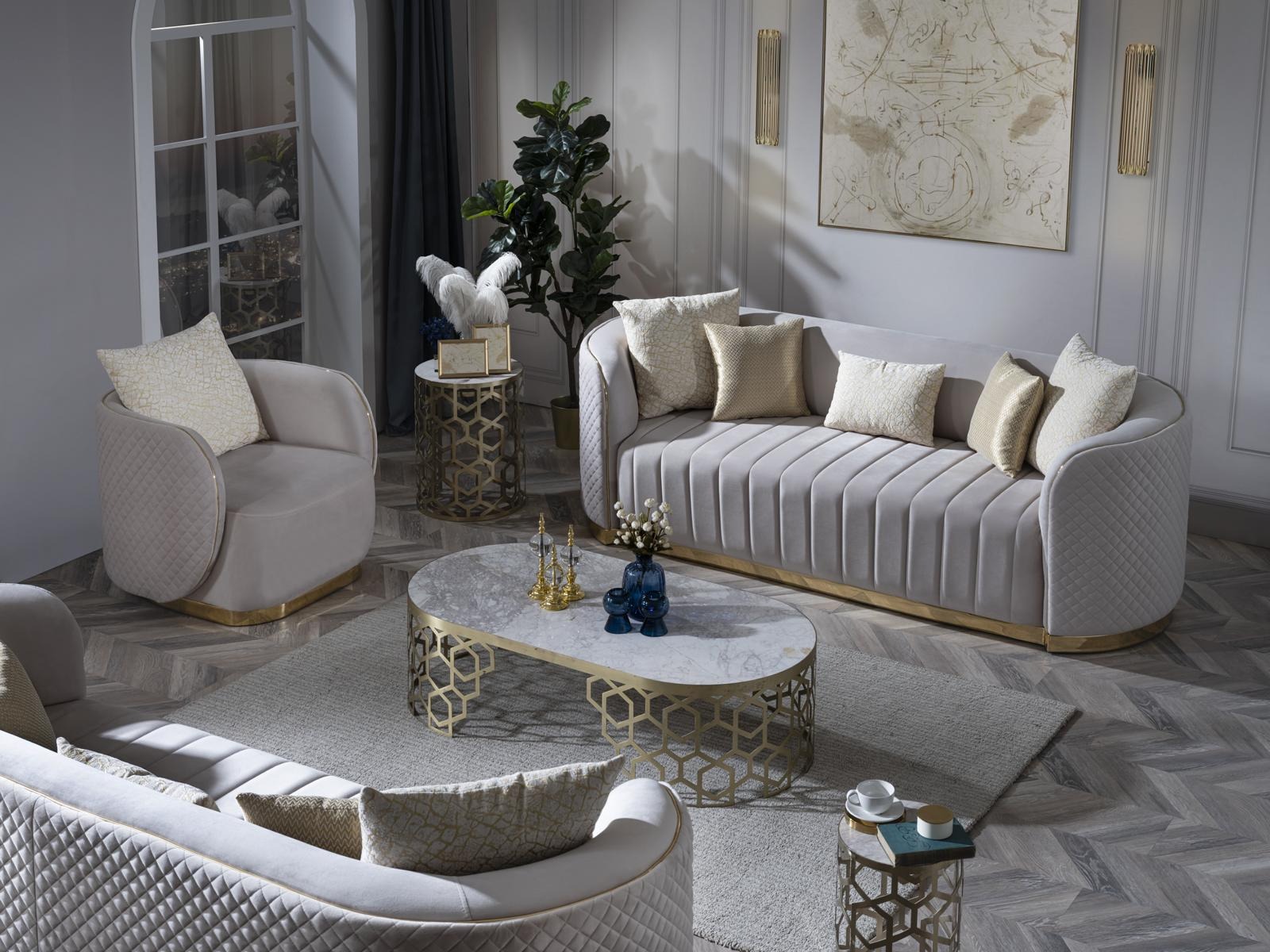 Luxus Sofa Ovale Sofagarnitur Set Polster Möbel 3+2+1 Samt Textil 3tlg.