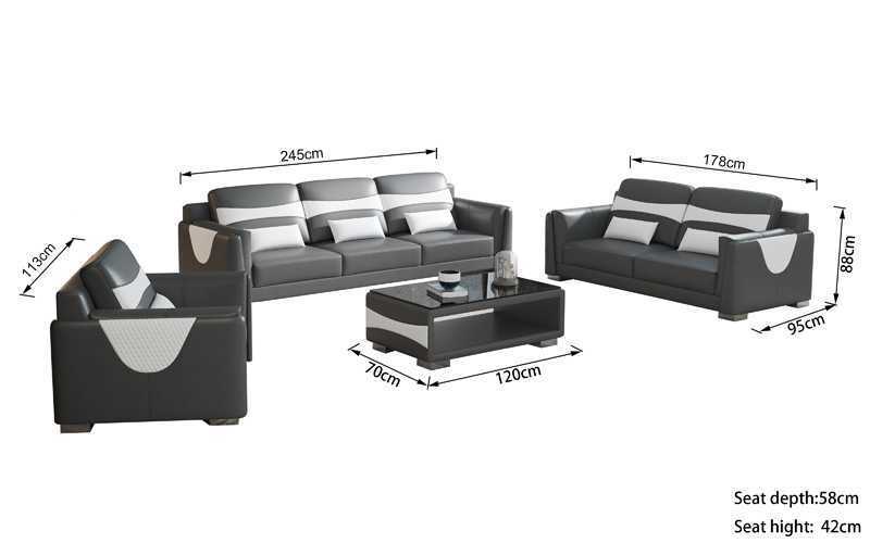 Entspannen Sie in Luxus mit unserer Sofagarnitur Luxus Komplette Couchgarnitur in Grau aus Kunstleder. Die hochwertige Garnitur besteht aus einem 3-Sitzer (ca. 245 cm), einem 2-Sitzer (ca. 178 cm) und einem Sessel (ca. 113 cm), die alle ca. 95 cm breit und 88 cm hoch sind. Sie haben die freie Farbwahl und können zwischen verschiedenen Farben wie Ocker, Kobaltblau, Gold und vielen mehr wählen. Für individuelle Anpassungen kontaktieren Sie uns gerne direkt. Optional können Sie auch zwischen verschiedenen Materialien wählen, wie Premium Kunstleder, Premium Lederfaserstoff, Premium Echtleder und Premium Textilstoff. Genießen Sie den Komfort und die Eleganz dieser Sofagarnitur in Ihrem Wohnzimmer. Perfekt für gemütliche Abende alleine oder mit der Familie!