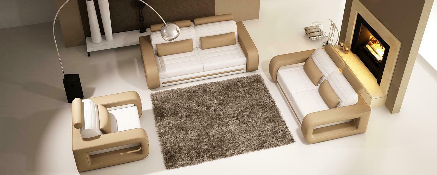 Verschönern Sie Ihr Zuhause mit unserer modernen Ledersofa-Couch Wohnlandschaft! Erhältlich in verschiedenen Farben wie Ocker, Marineblau, Elfenbein und vielen mehr, passt dieses Design-Sofa perfekt zu Ihrem Einrichtungsstil. Hergestellt aus Premium Lederfaserstoff (70% Leder / 30% Polyester) bietet diese Sofagarnitur sowohl Komfort als auch Langlebigkeit. Mit Maßen von ca. 220 x 96 x 97 cm (3-Sitzer) und ca. 170 x 96 x 97 cm (2-Sitzer) ist dieses Sofa ideal für gemütliche Abende. Optional können Sie auch einen passenden Sessel erwerben. Wählen Sie zwischen verschiedenen Materialien wie Premium Echtleder oder Premium Textilstoff, um Ihren persönlichen Stil zu unterstreichen. Bringen Sie mit unserer Ledersofa-Couch Wohnlandschaft Stil und Eleganz in Ihr Zuhause!