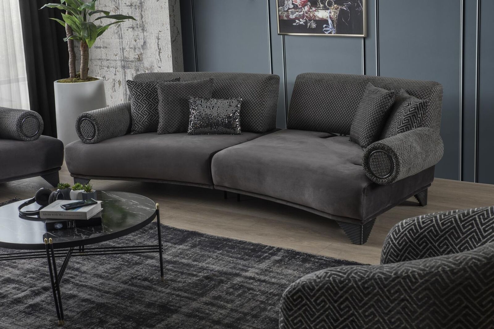 Sofagarnitur, moderner Stil, Sessel, Sofa, Edelstahlelemente, grau, Designer