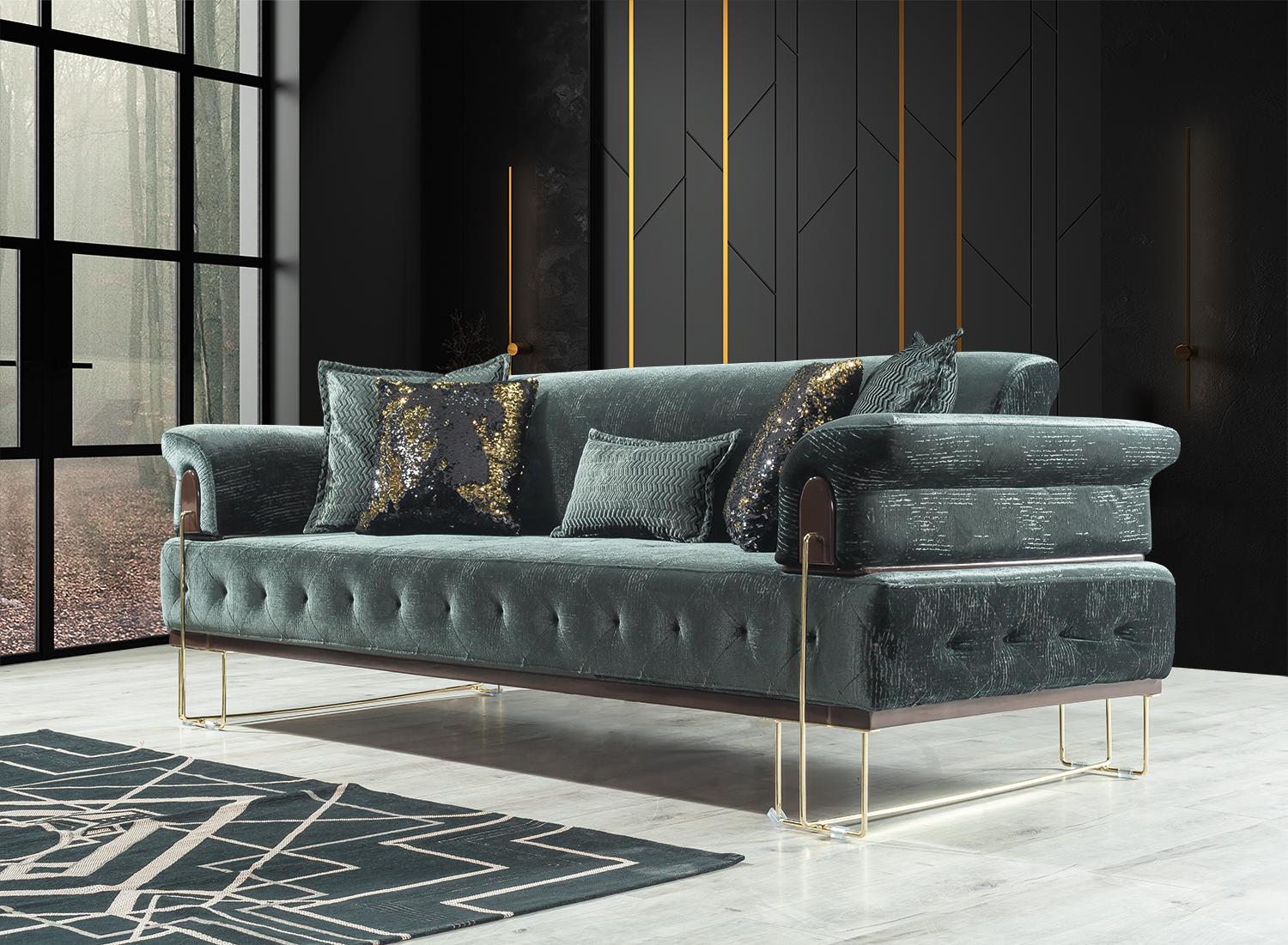 Erleben Sie modernen Komfort und zeitloses Design mit unserer Sofagarnitur aus Stoff in zeitgemäßen Farben wie Braun, Grün, Schwarz, Blau, Rot oder Grau. Diese stilvolle Garnitur besteht aus zwei 3-Sitzer-Sofas und einem Sessel, die mit einer Sitzhöhe von ca. 44 cm und einer Sitztiefe von ca. 56 cm für Gemütlichkeit sorgen. Die Maße der Sofas betragen ca. 240 x 91 x 87 cm und des Sessels ca. 91 x 85 x 98 cm. Die Kombination aus Metall und Textil garantiert Langlebigkeit und Komfort. Diese Sofagarnitur ist nicht nur wie abgebildet erhältlich, sondern kann auch kundenspezifisch angepasst werden. Wählen Sie aus einer Vielzahl an Farben und Materialien wie Samt, Velours, Polyester, Kunstleder oder Leder, um Ihre Traumcouch zu gestalten. Profitieren Sie von unserem Angebot, große Komplette Garnituren nach Ihren Wünschen anzufertigen. Nutzen Sie die Möglichkeit, Änderungen an Sitztiefe, Länge oder Breite vorzunehmen. Lassen Sie sich von unserer Vielfalt überzeugen und stellen Sie direkt Ihre Anfrage für dieses moderne Sofagarnitur-Set!