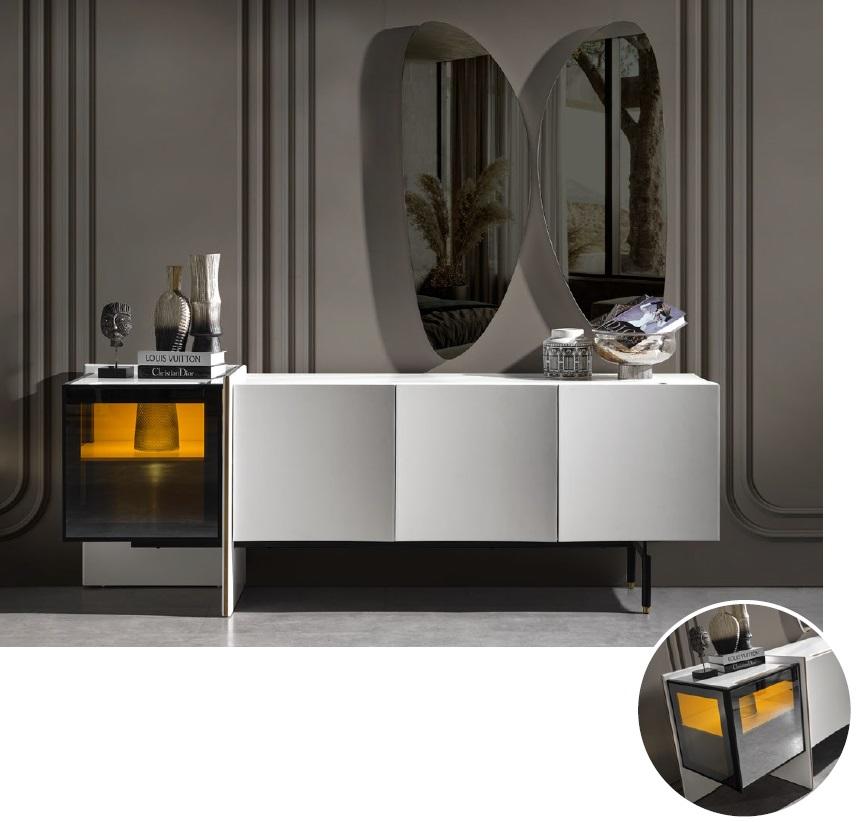 Gruppe Sideboard Spiegel Kommode Holz Modern Esszimmer Weiß Design Neu