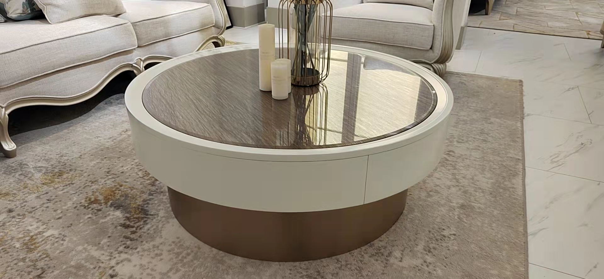 Design Metall Holz Gold Sofa Wohnzimmer Tische Beistell Rund Tisch Couchtisch