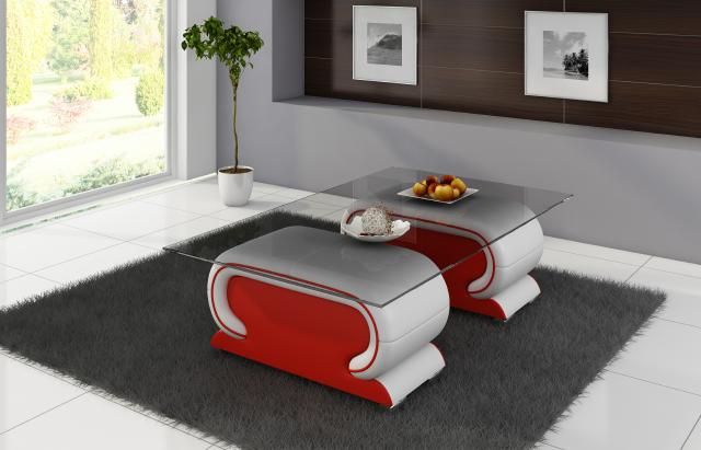 Designer Glastisch Tisch Polster Leder Tisch Couch Sofa Ledertische