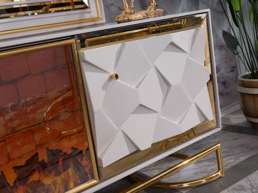Kamin Wandgestell für Fernseher mit Kaffeetisch Set in elegantem Premium-Design aus Edelstahl