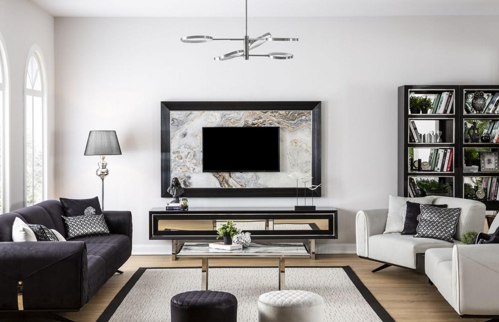 Entdecken Sie die Luxus Wohnwand + Sideboard Lowboard Regal für Ihr Wohnzimmer in elegantem Schwarz Hochglanz! Diese hochwertige Wohnzimmermöbel-Kombination besticht durch ihr modernes Design und die edle Optik. Das Set umfasst ein Sideboard mit den Maßen ca. 225 x 50 x 82 cm und eine TV-Wand mit den Maßen ca. 200 x 100 cm. Hergestellt aus Holz, verleiht dieses Set Ihrem Zuhause ein stilvolles Ambiente. Sichern Sie sich jetzt diese exklusive Wohnwand von B2B Moebel für gemütliche Abende vor dem Fernseher!
