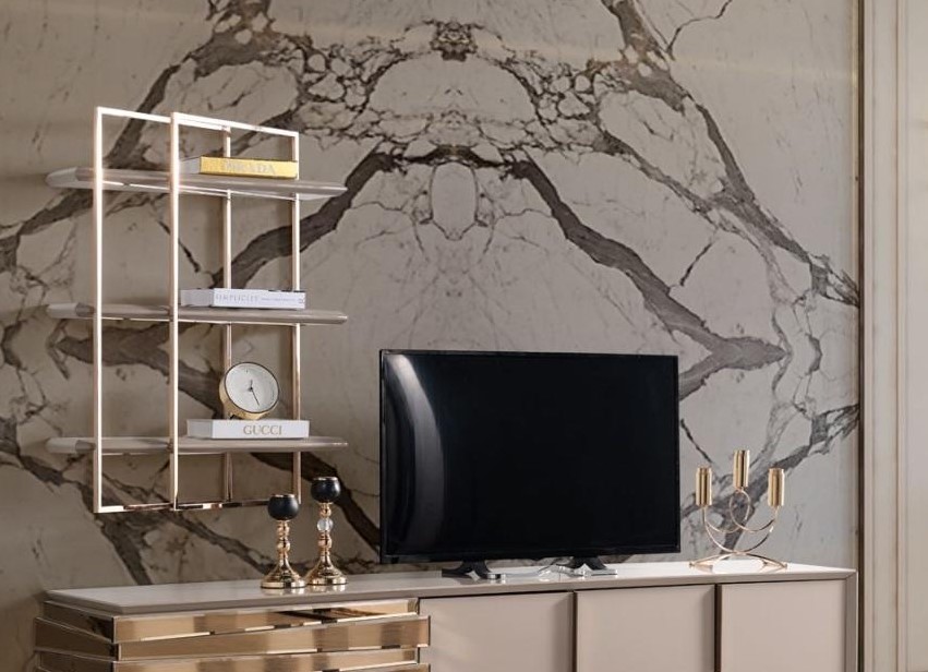 RTV Lowboard TV Ständer Sideboard Beige Gold Wohnzimmer Set Regale Neu