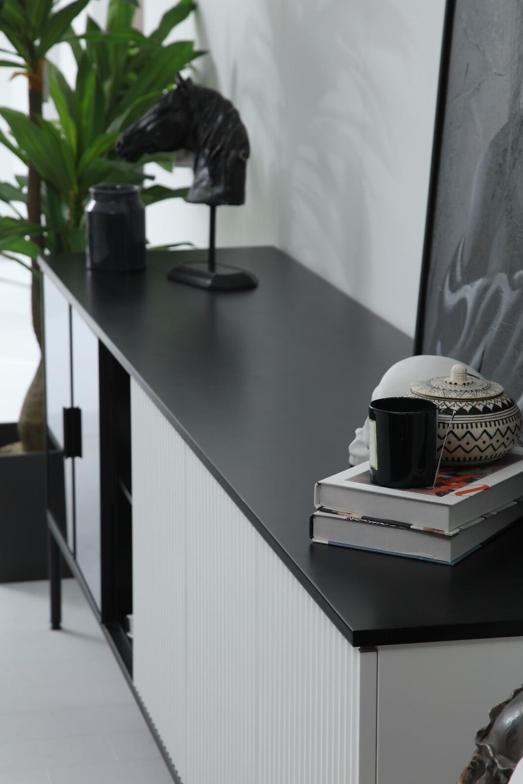 Entdecken Sie die perfekte Ergänzung für Ihr modernes Wohnzimmer mit dieser stilvollen Sideboard Kommode Anrichte aus Holz in zeitlosem Weiß. Mit Maßen von ca. 235 cm Länge, 50 cm Breite und 83 cm Höhe bietet dieses elegante Möbelstück viel Stauraum und verleiht Ihrem Zuhause ein modernes Flair. Das hochwertige Holzmaterial garantiert Langlebigkeit und eine edle Optik. Bringen Sie Ordnung in Ihr Wohnzimmer und setzen Sie gleichzeitig ein stilvolles Design-Statement! Nur bei B2B Moebel erhältlich.