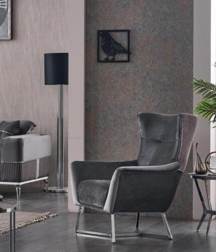Grau Sessel Wohnzimmer Textil Möbel Modern Design Polster Stoff Luxus Sitz
