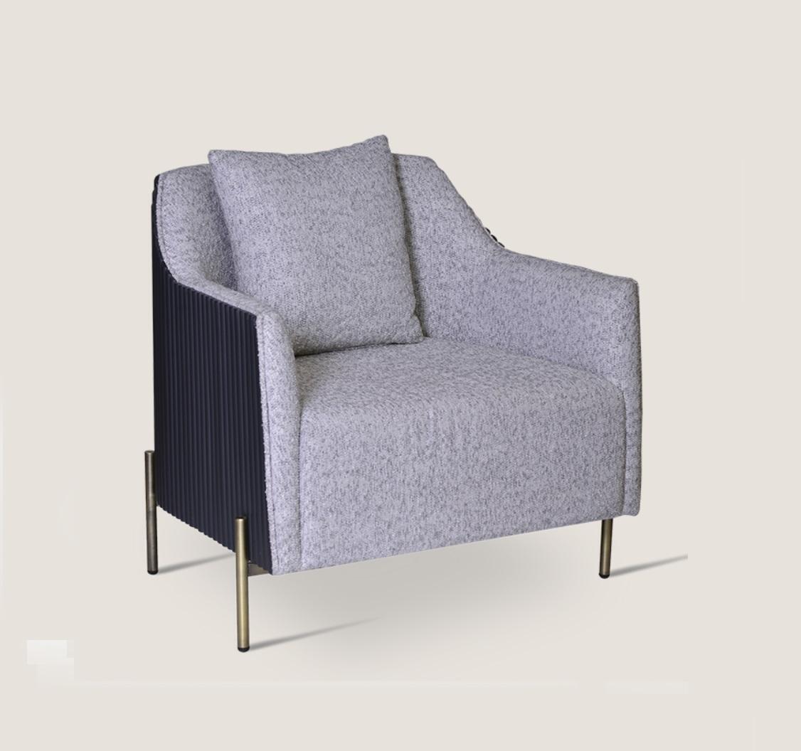 Grauer Einsitzer Luxus Sessel Edelstahlfüße Wohnzimmer Möbel Holzgestell