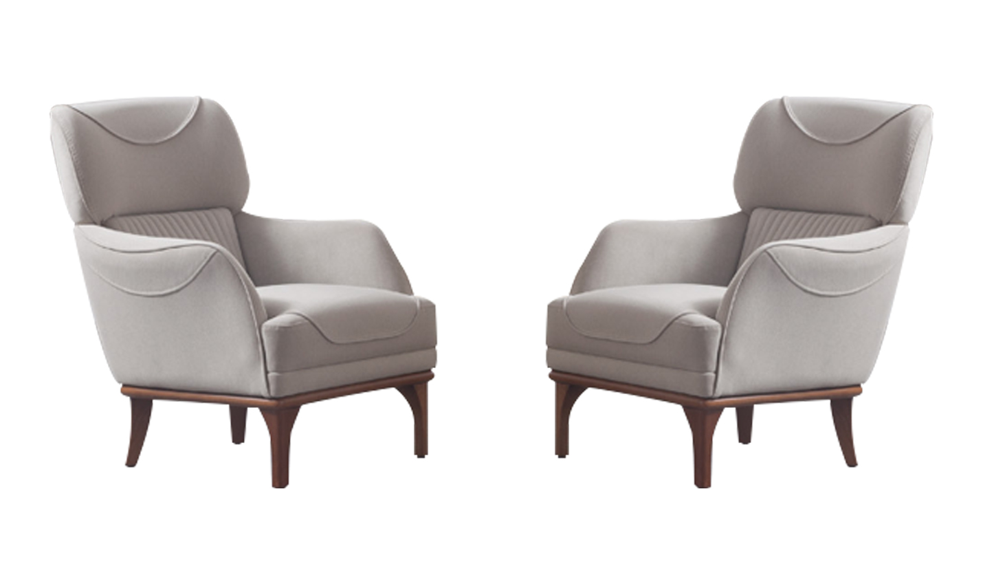 Hergestellt aus hochwertigem Holz und Textilmaterialien zeichnen sich die Sessel nicht nur durch ihre ansprechende Optik, sondern auch durch ihre Langlebigkeit aus. Der moderne Stil und die zeitlose hellgraue Farbe verleihen Ihrem Wohnzimmer eine frische Atmosphäre.