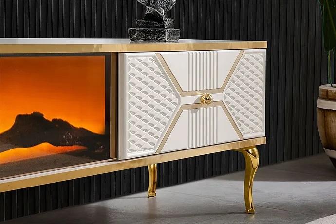 Luxuriöses TV-Sideboard weißgoldfarbenem Rahmen aus MDF Metall Weiß