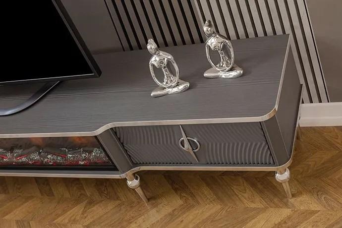 Grauer TV-Schrank, Imitierter Kamin, Wohnzimmermöbel