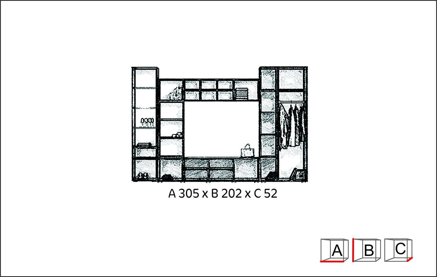 ca: 305 x 52 x 202 cm