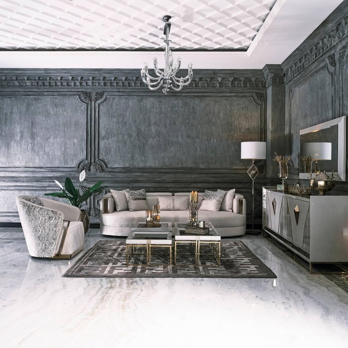 Luxus Garnitur Stoffsofa Sessel Wohnzimmer Couchtische Set 7tlg Grau