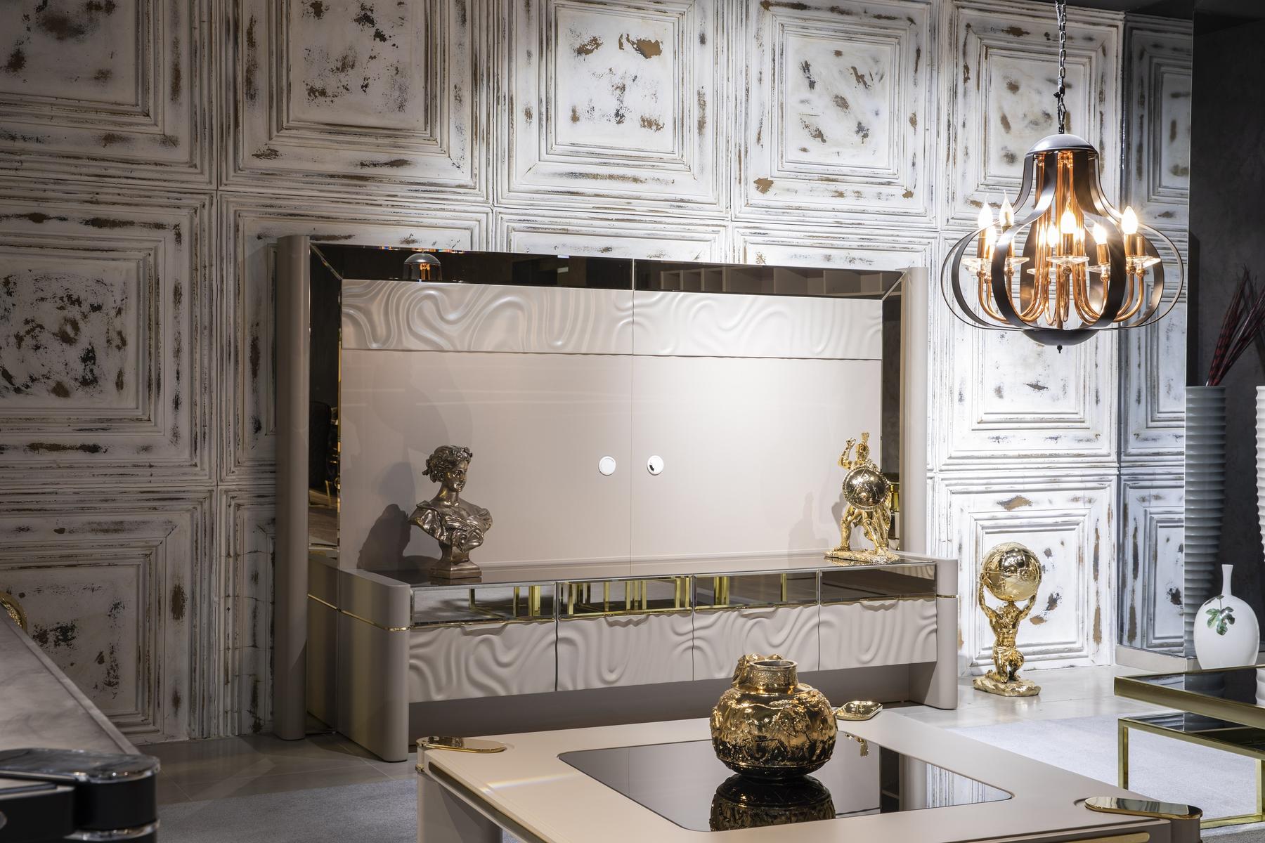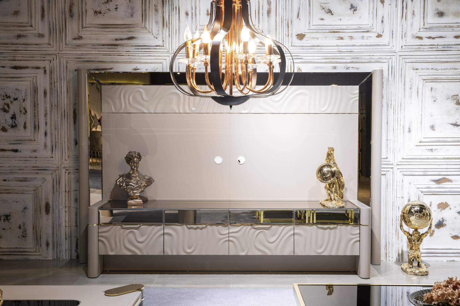 Luxus Wohnwand RTV Lowboard TV Ständer Beige Wohnzimmer Möbel Neu