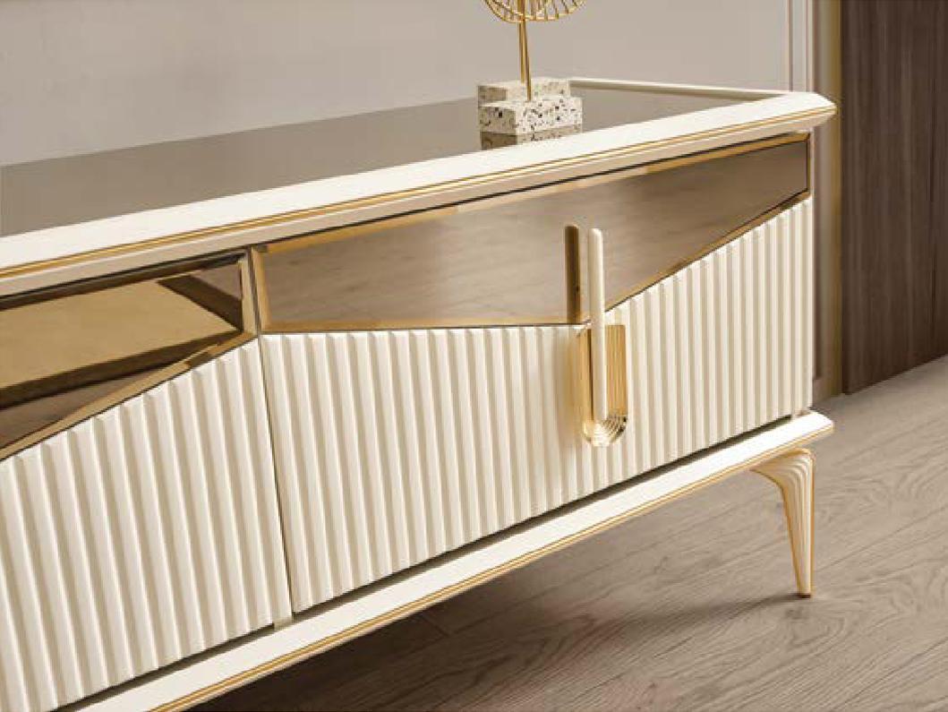 Luxus Wohnwand TV Ständer Wandpanel Wohnzimmer RTV Lowboard Gold