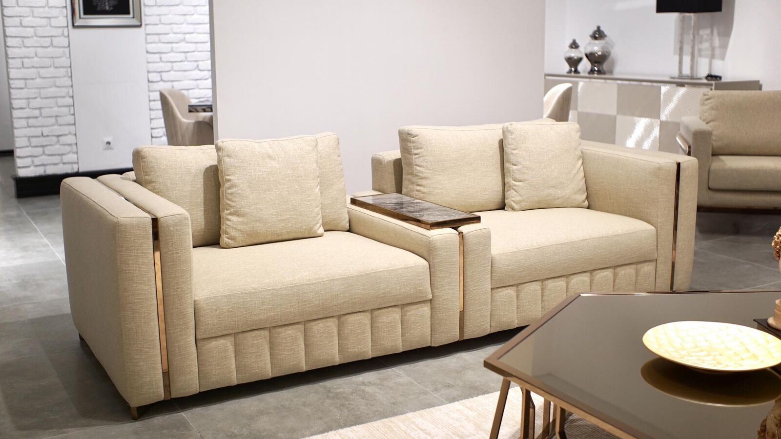 Modern Wohnzimmer Sofa Zweisitzer Beige Textil Polster Möbel Einrichtung Design