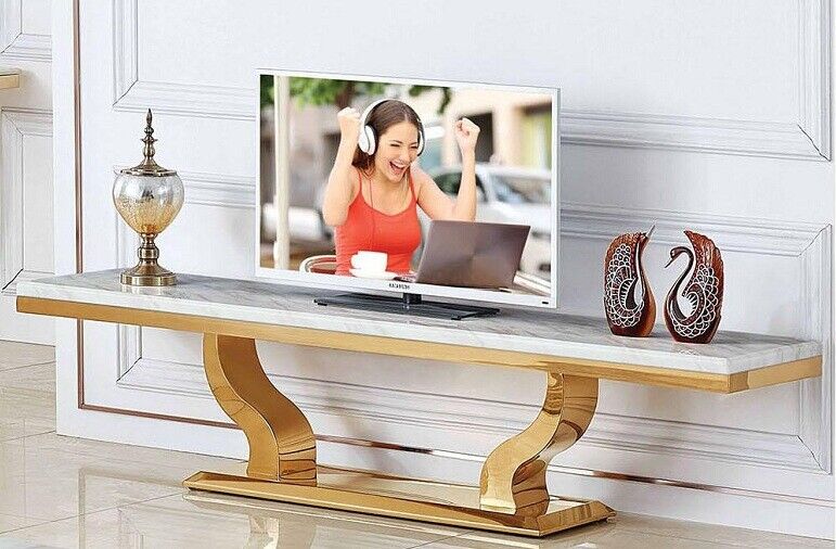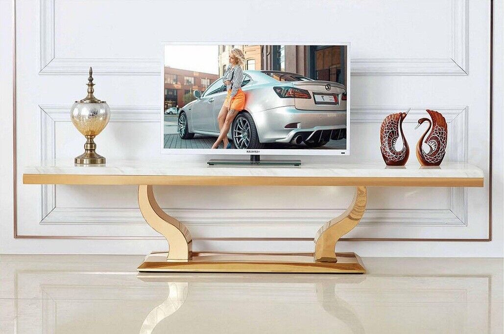 Entdecke das moderne Sideboard TV-Regal aus Edelstahl und Marmor! Mit einer Länge von ca. 200 cm und einer Höhe von ca. 44 cm bietet dieses elegante Kommode Board viel Platz für deine Unterhaltungselektronik. Das stilvolle Design in der abgebildeten Farbe verleiht deinem Wohnzimmer eine luxuriöse Atmosphäre. Perfekt für jeden, der auf der Suche nach einem hochwertigen TV-Möbelstück ist. Hol dir jetzt das neue Konsolen-Set von B2B Moebel!
