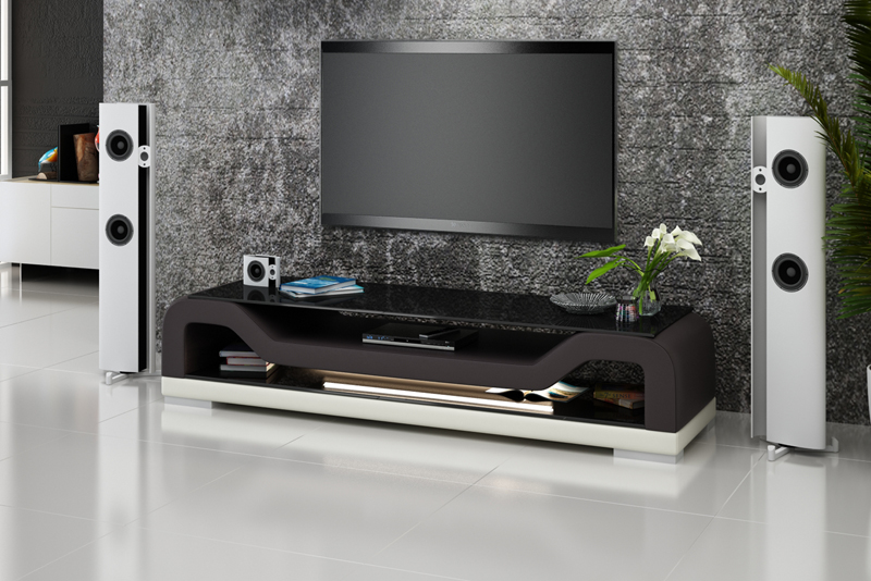 RTV TV Sideboard Leder Glas Tisch Fernseh Dekor Schrank Tisch Designer