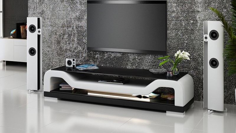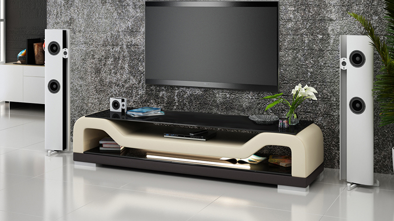 RTV TV Sideboard Leder Glas Tisch Fernseh Schrank Lowboard Mo.F