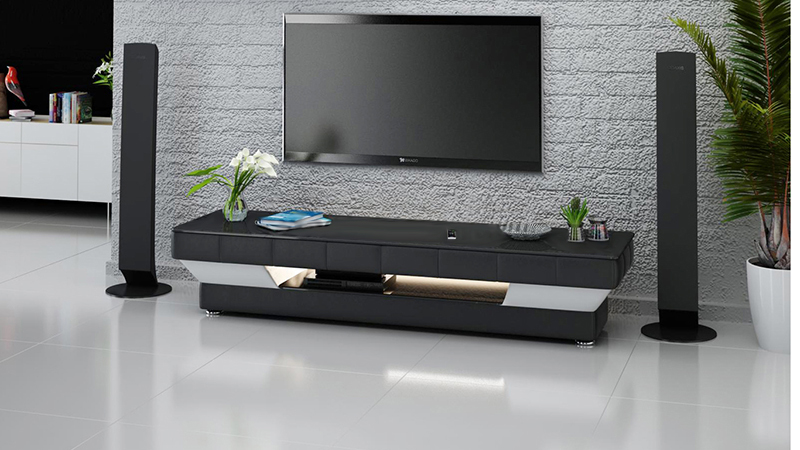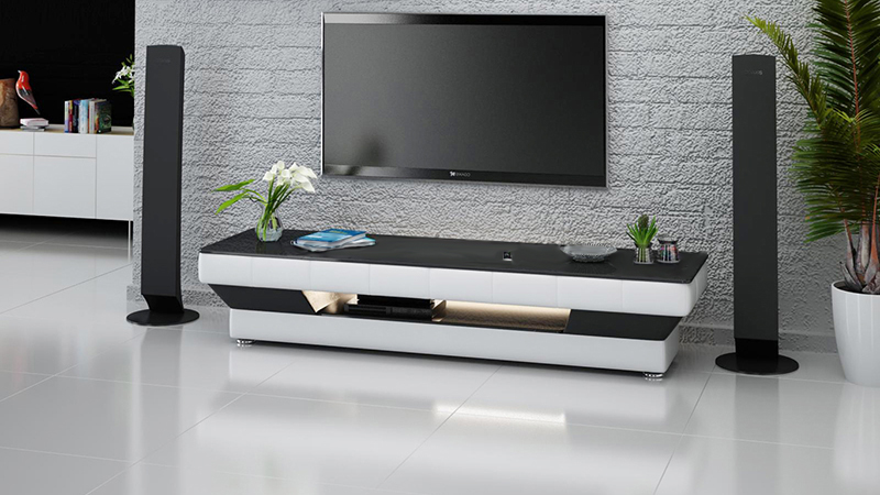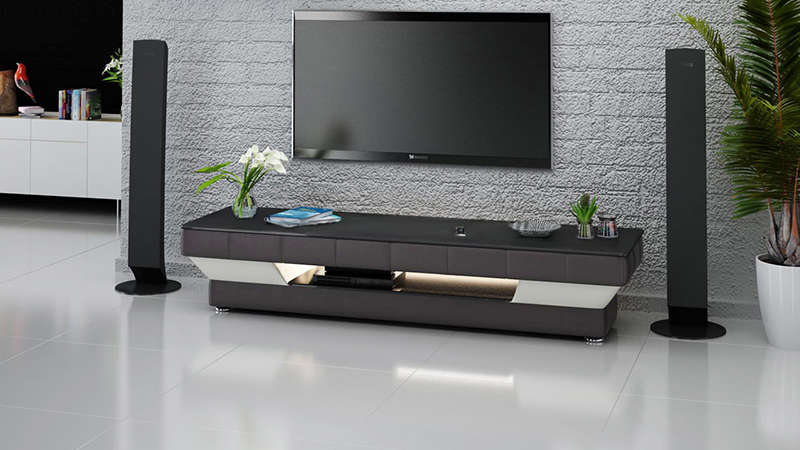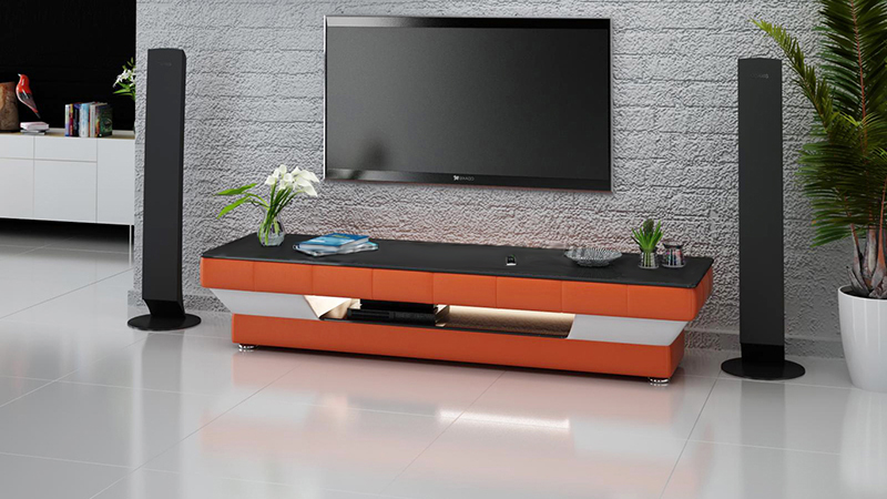 RTV TV Sideboard Leder Glas Tisch Fernseh Schrank Tisch Lowboard Mo.J