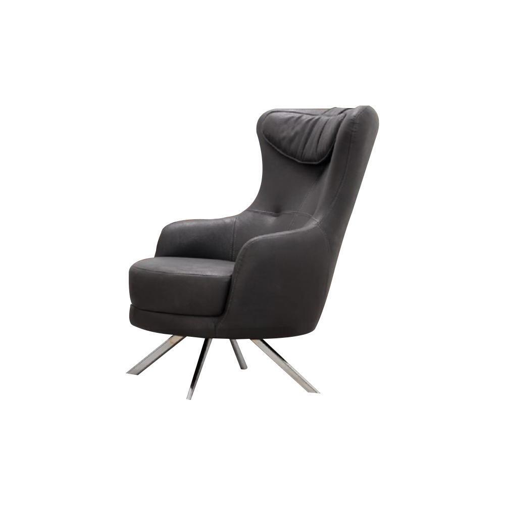 Schwarzer Ledersessel Ohrensessel Wohnzimmer Luxuriöser Einsitzer Möbel